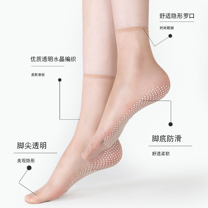 丝袜女短袜无痕超薄防滑脚尖透明夏季薄款短筒防勾耐磨隐形水晶袜