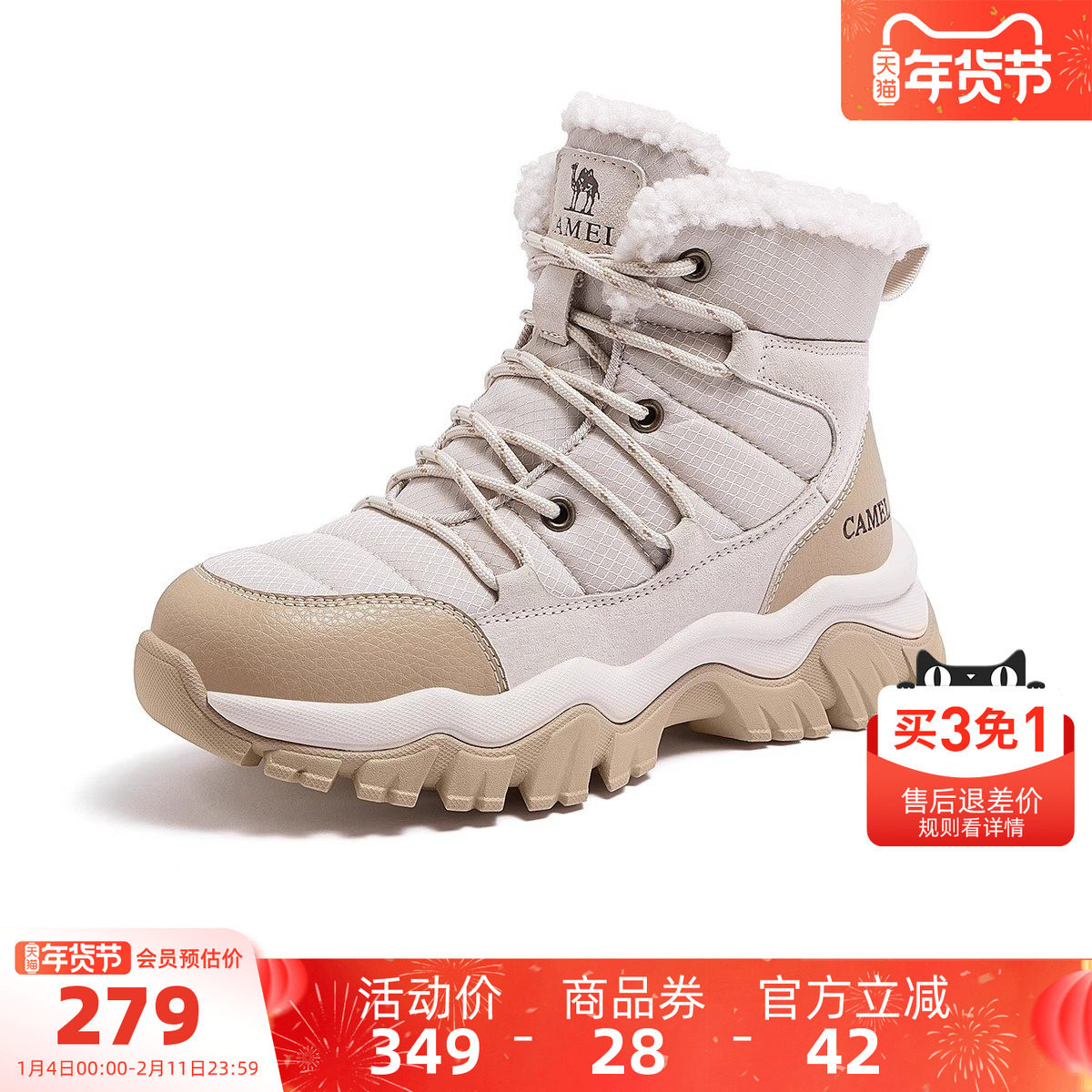骆驼女鞋2025冬季新款户外雪地靴女加绒保暖短靴子厚底徒步登山鞋