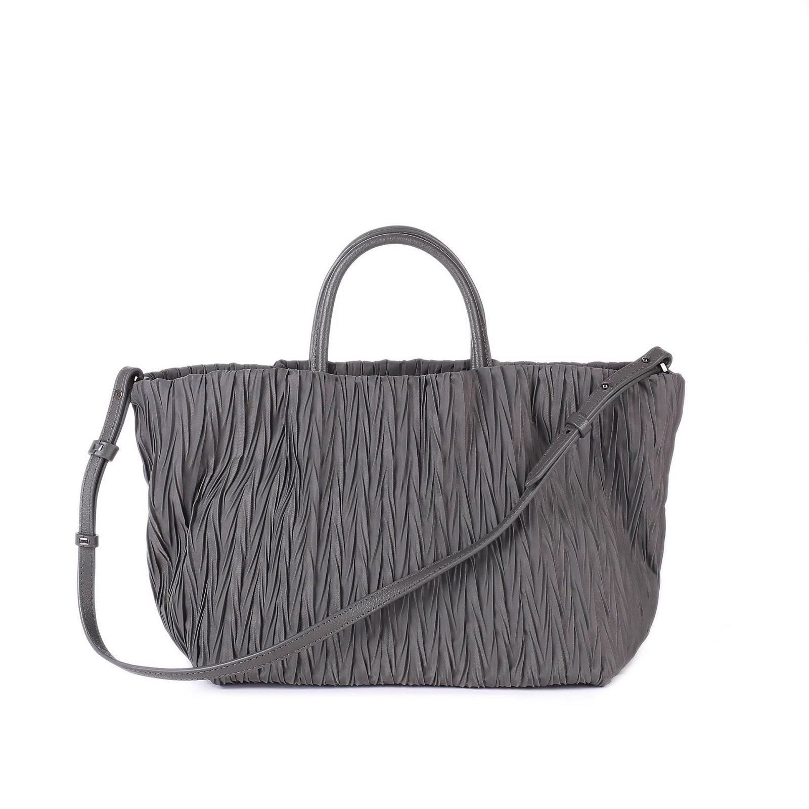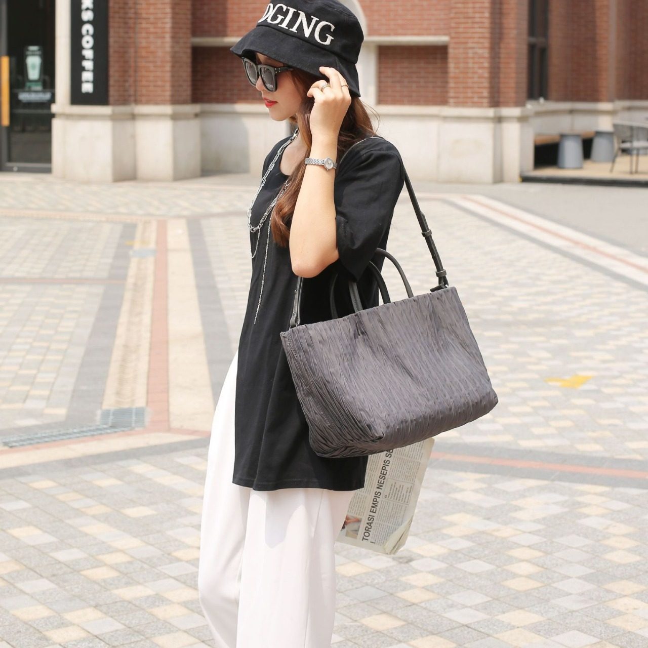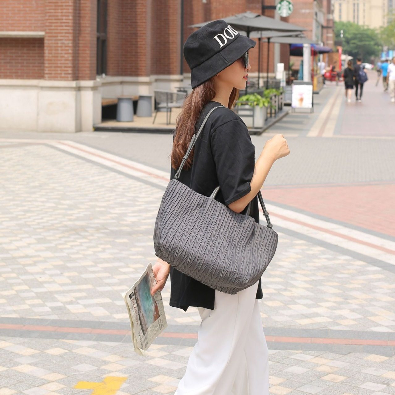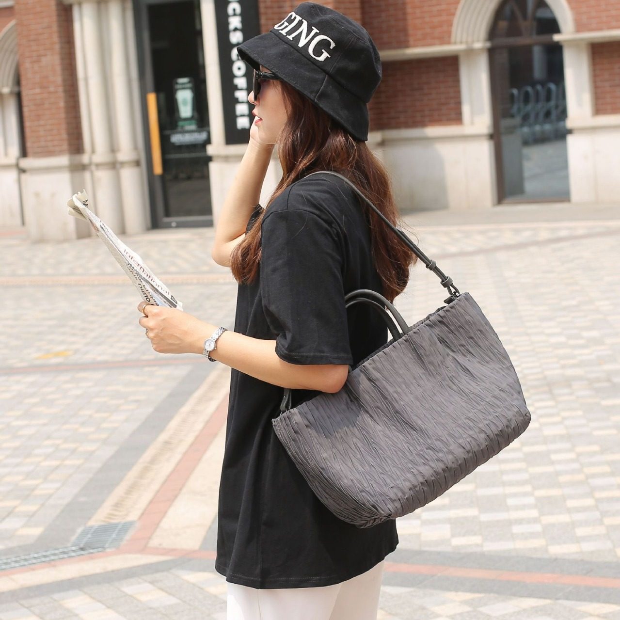 欧美风皱褶降落伞防水尼龙配真皮女包大容量单肩手提斜跨托特包包