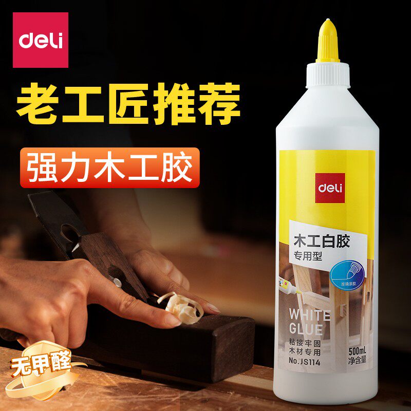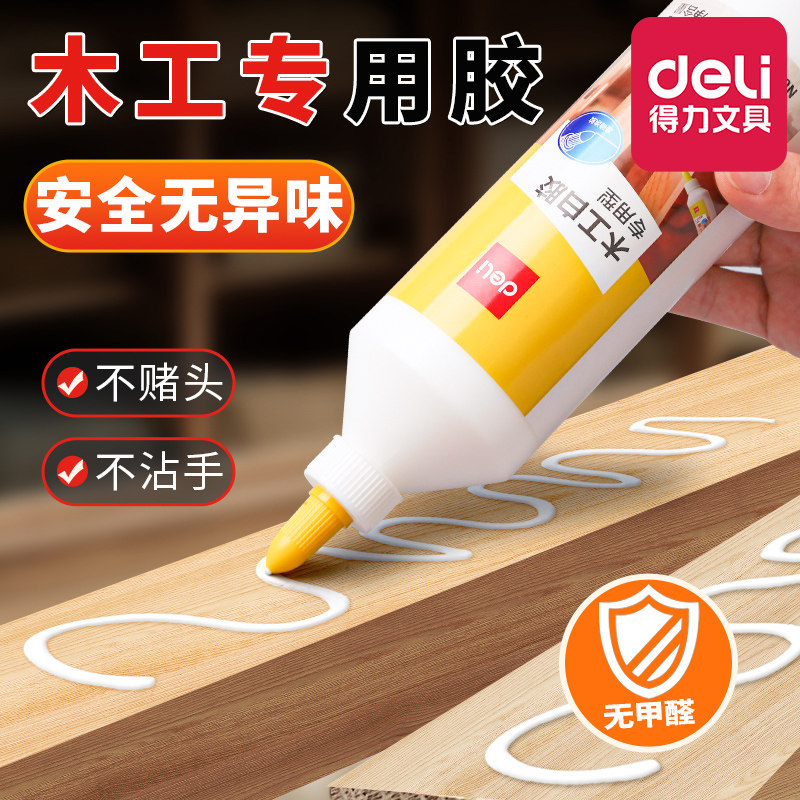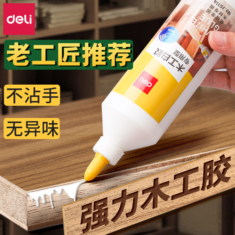得力强力木工胶水粘木头家具粘瓷砖免打孔防水快干填充实木白乳胶木材开裂修复免钉胶手工diy粘合剂木工专用