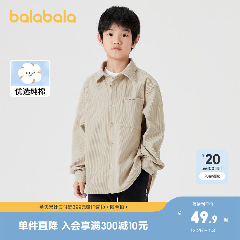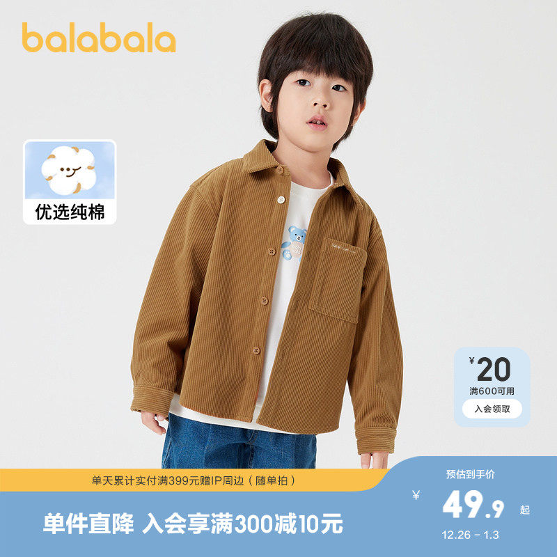 巴拉巴拉童装儿童衬衫男童长袖衬衣秋装2025灯芯绒亲子装百搭