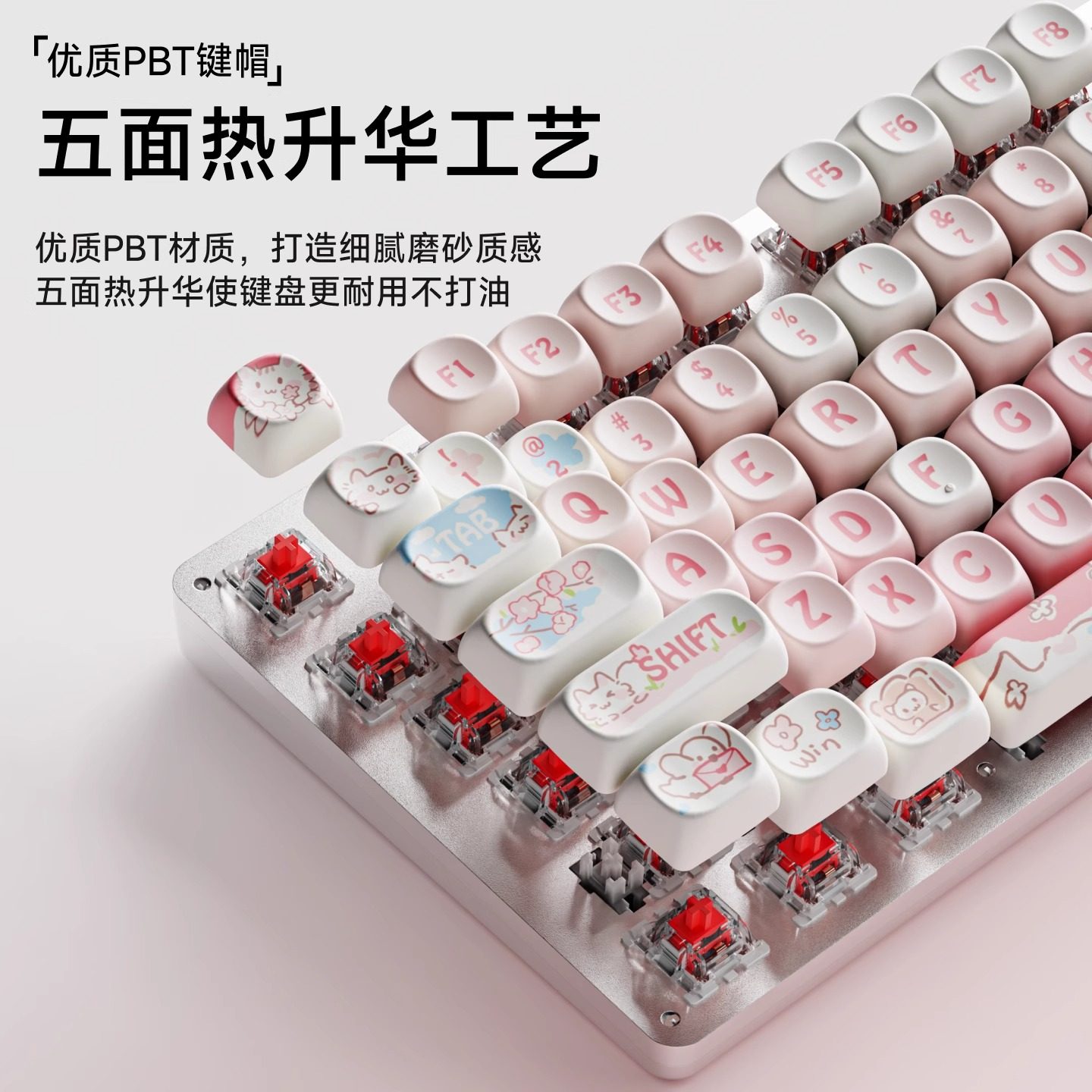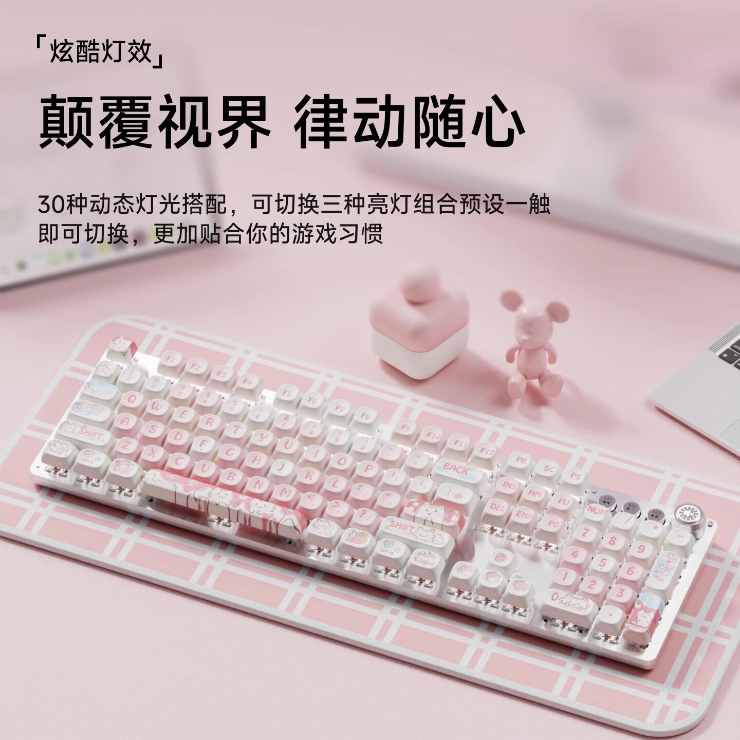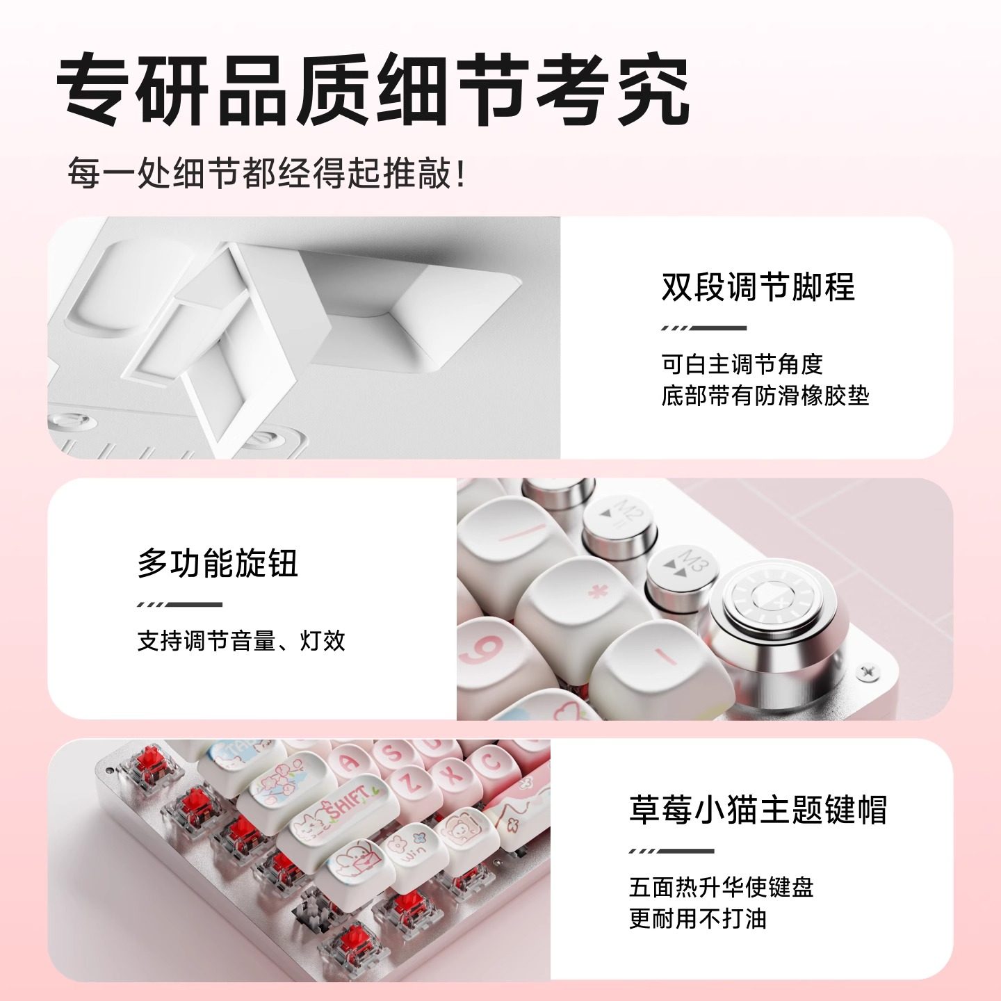 前行者TK930草莓小猫机械键盘鼠标套装104青红茶轴女生办公高颜值