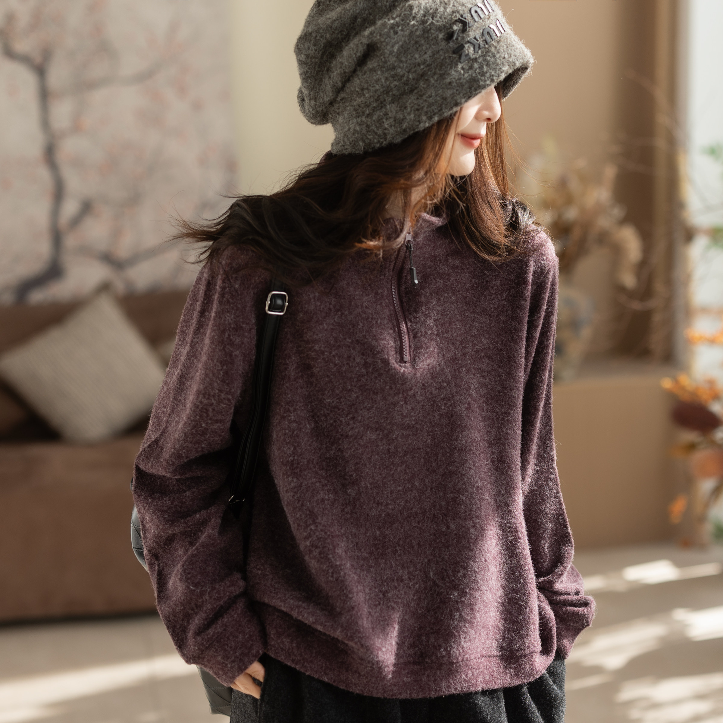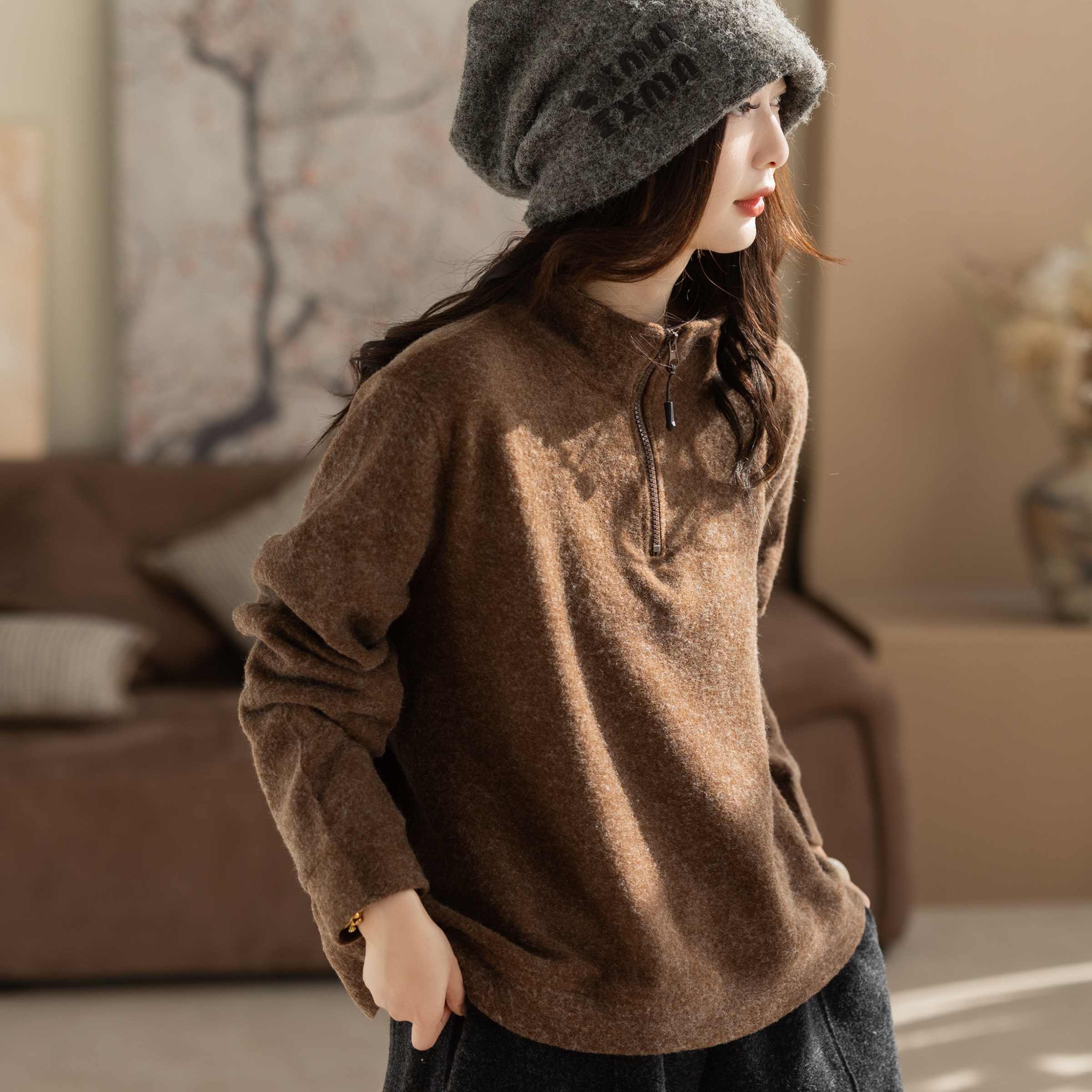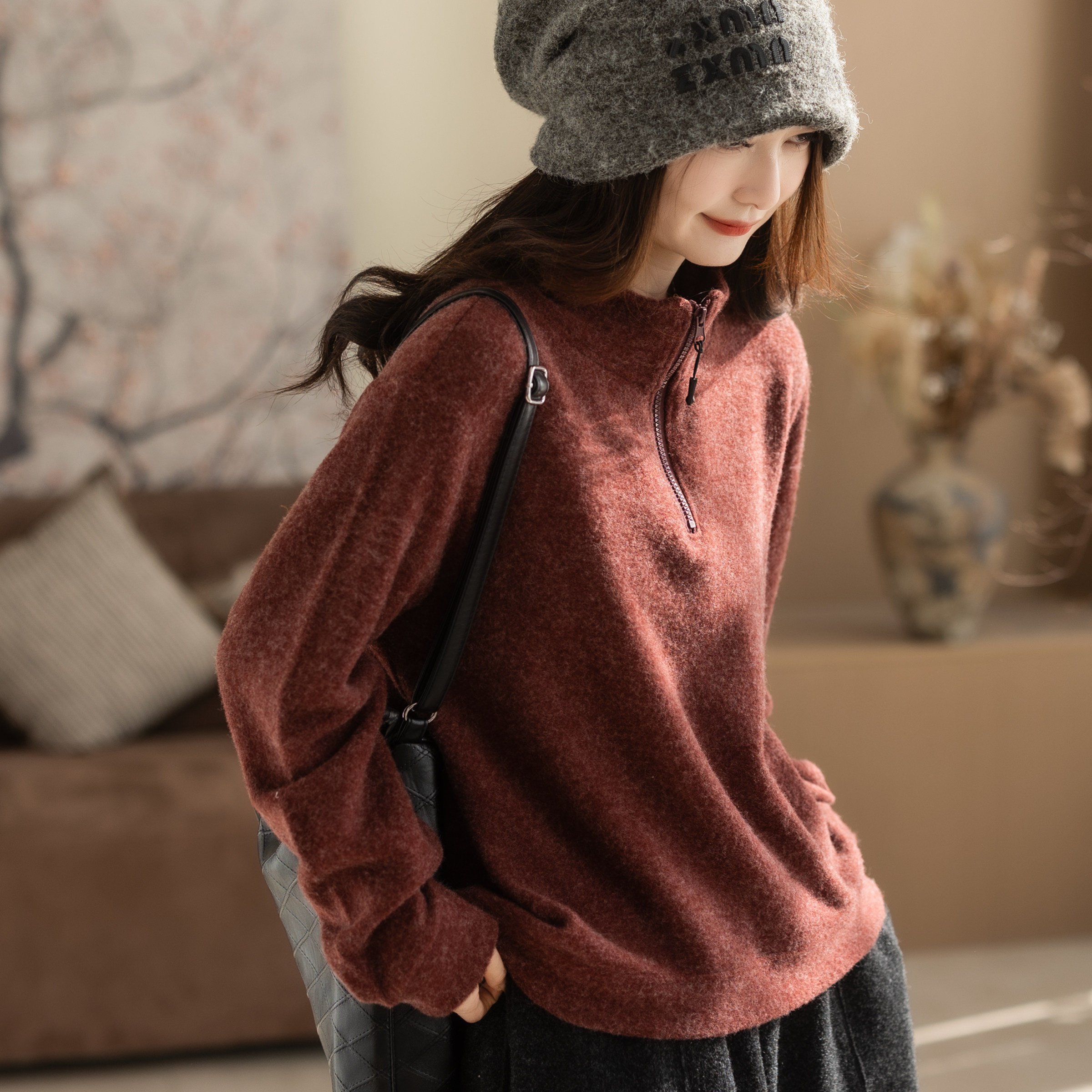 咖咪羽毛衣女秋冬新款半高领复古纯色百搭休闲宽松时尚女装上衣厚