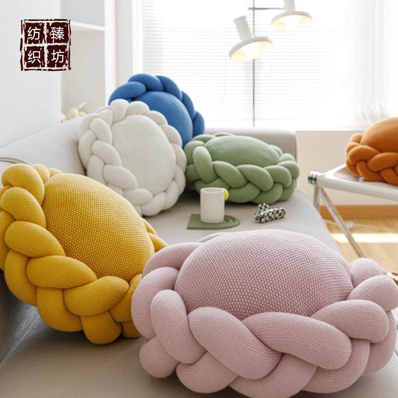 手工花环圆形针织抱枕靠枕 坐垫软装配饰 拍照道具
