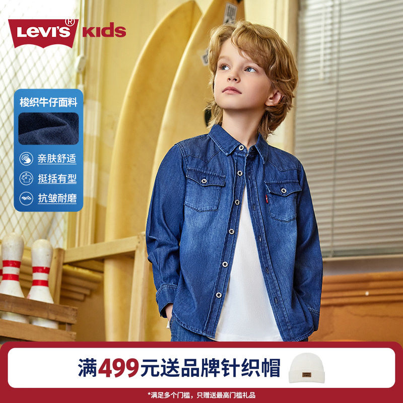 Levis李维斯儿童牛仔衬衫秋秋季新款经典水洗男童女童衬衣童装