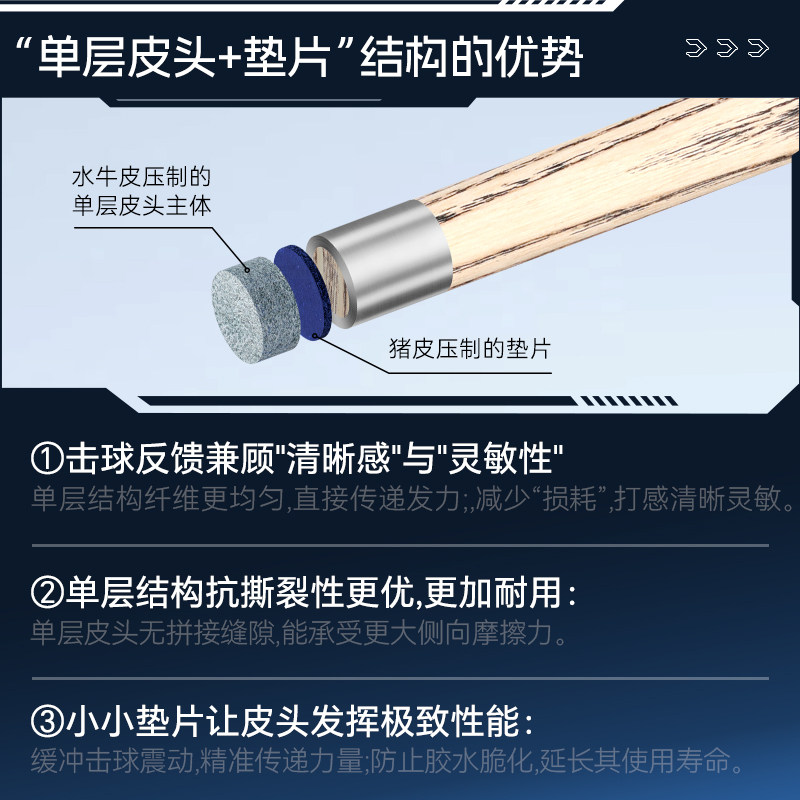 奥秘台球杆中头海神皮头单层小头斯诺克球杆杆头桌球杆枪头配件