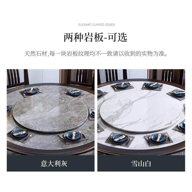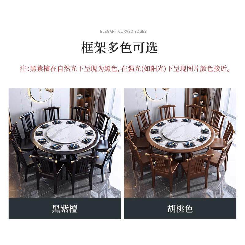 新中式实木餐桌椅组合岩板圆桌带转盘1.3米酒店家用餐厅饭桌岩板