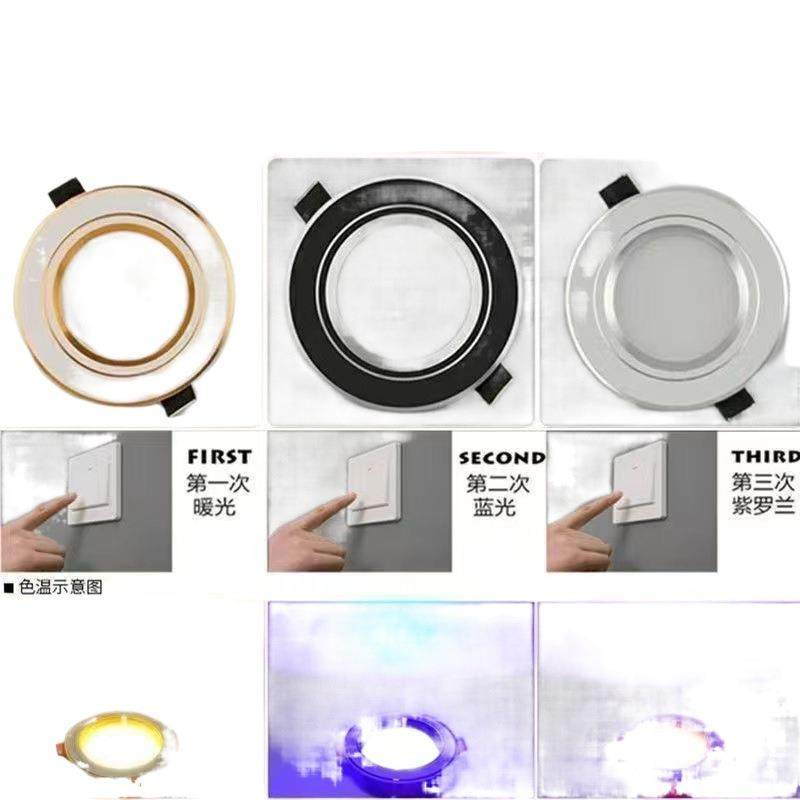s%筒灯嵌入式三色变光家用天花洞灯7.5/8公分客厅吊顶射孔灯铜灯