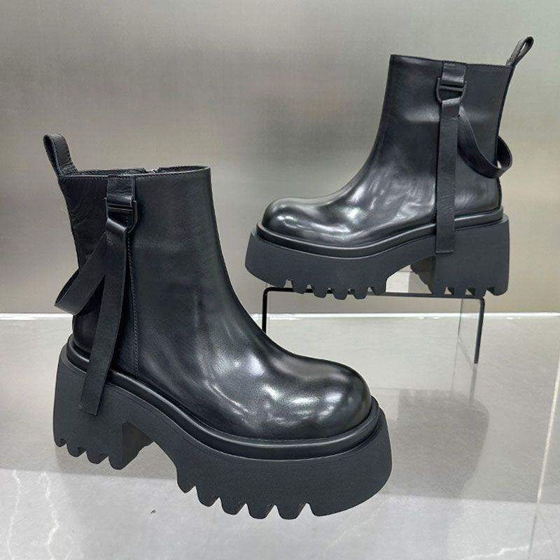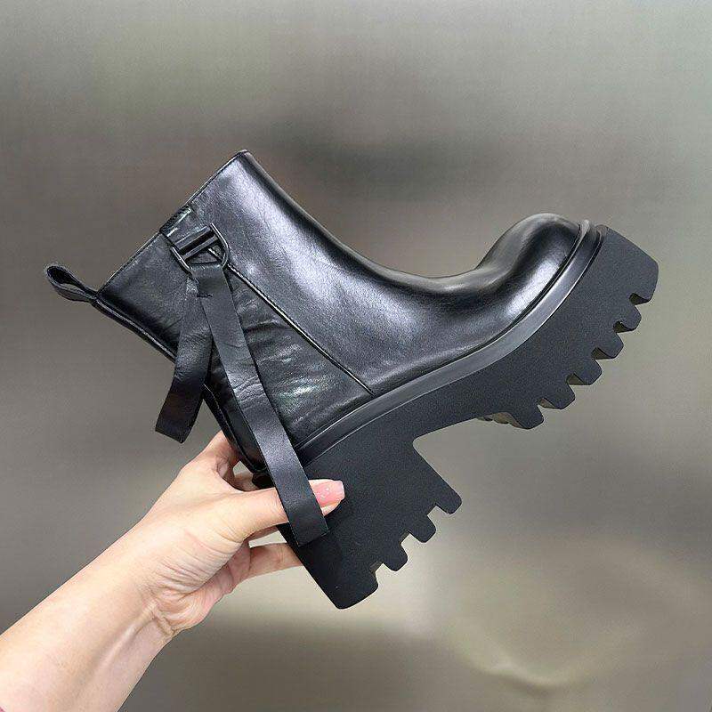 牛皮版~厚底马丁靴女2025新款爆款增高短靴小个子黑色英伦风靴子
