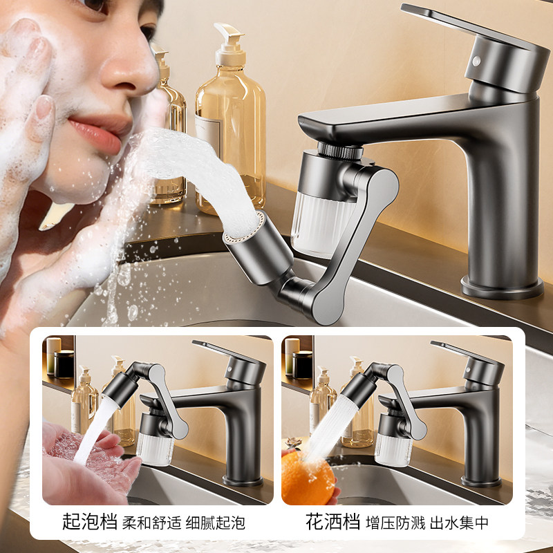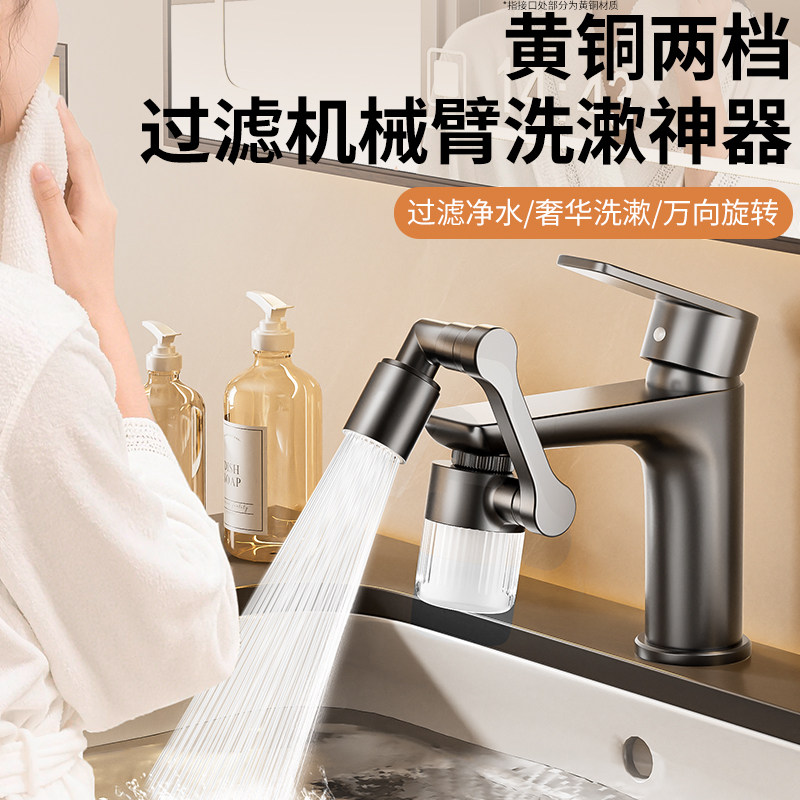 机械臂万向过滤水龙头起泡器洗脸盆可旋转出水嘴卫生间防溅水神器