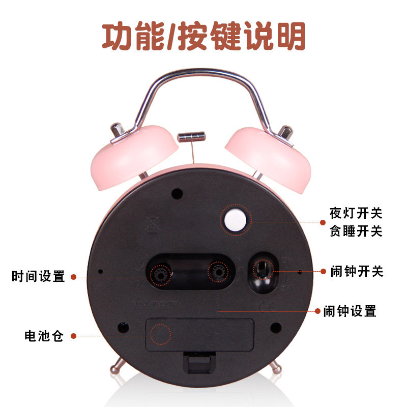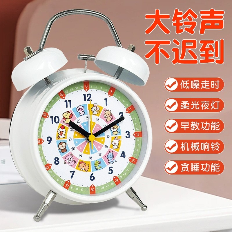 儿童闹钟金属打铃大音量认时早教钟表静音时钟小学生小孩起床神器