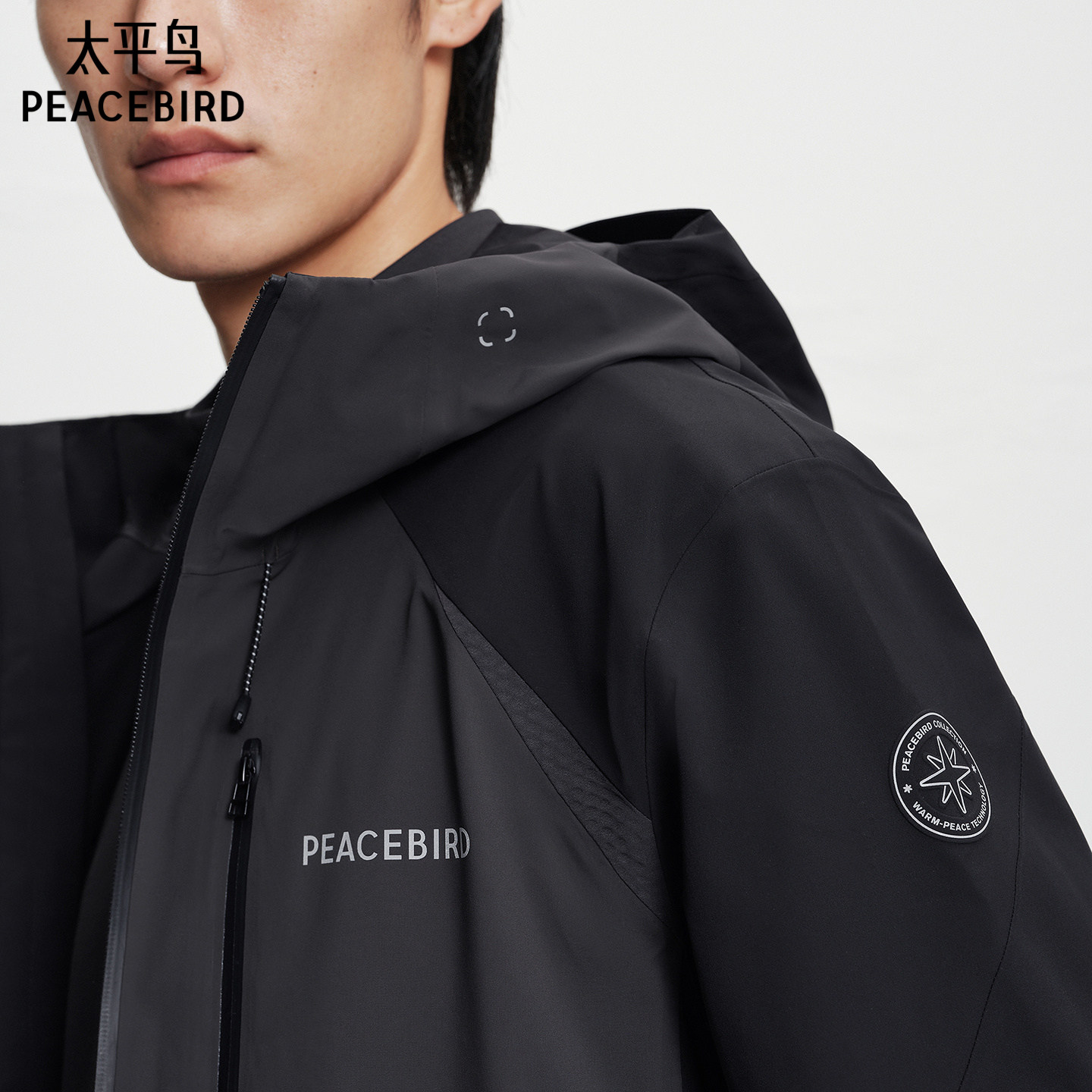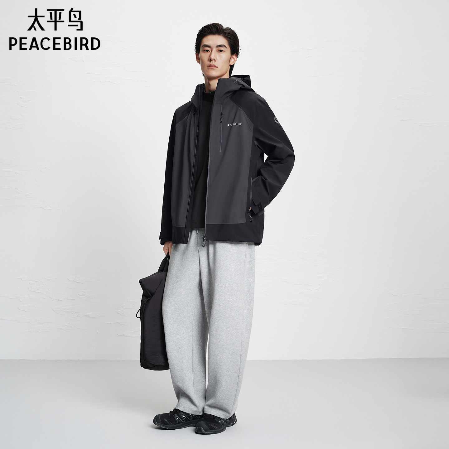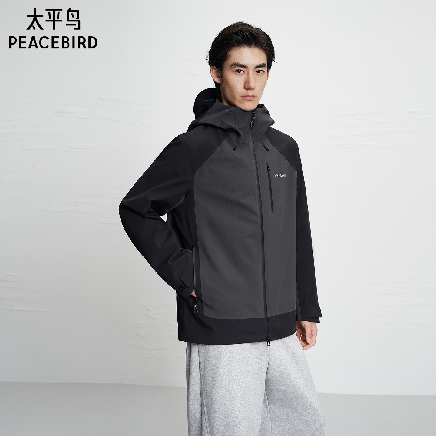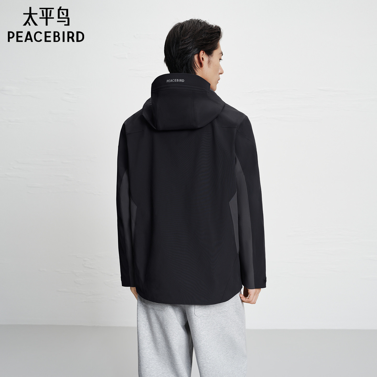 太平鸟男装 撞色拼接外套男冲锋衣户外工装连帽夹克男潮