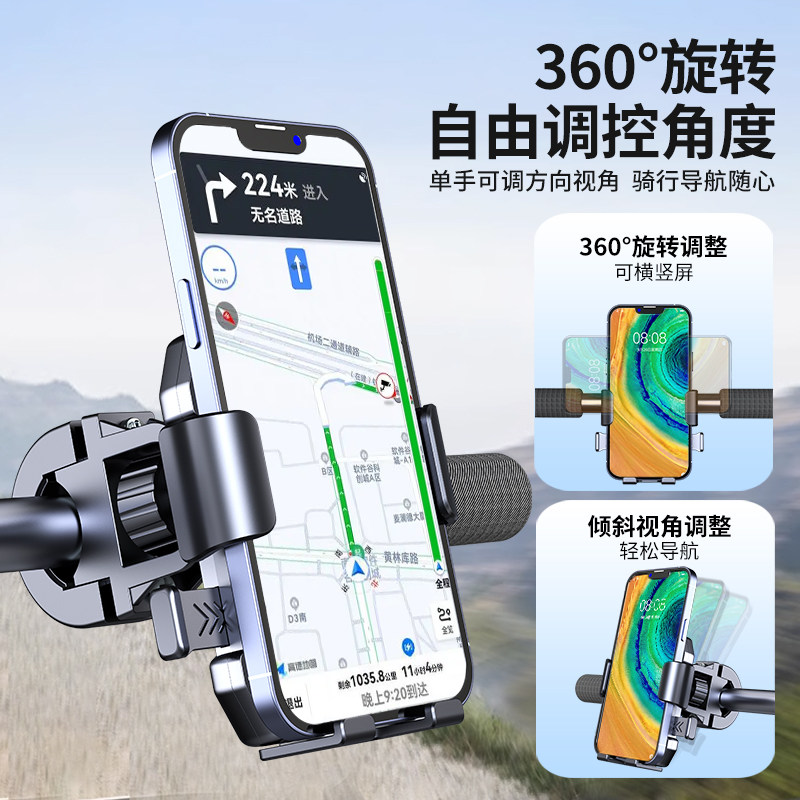 电动车骑行手机支架摩托车自行车山地公路车外卖架骑手车载减震固定山地电瓶车专用导航支架
