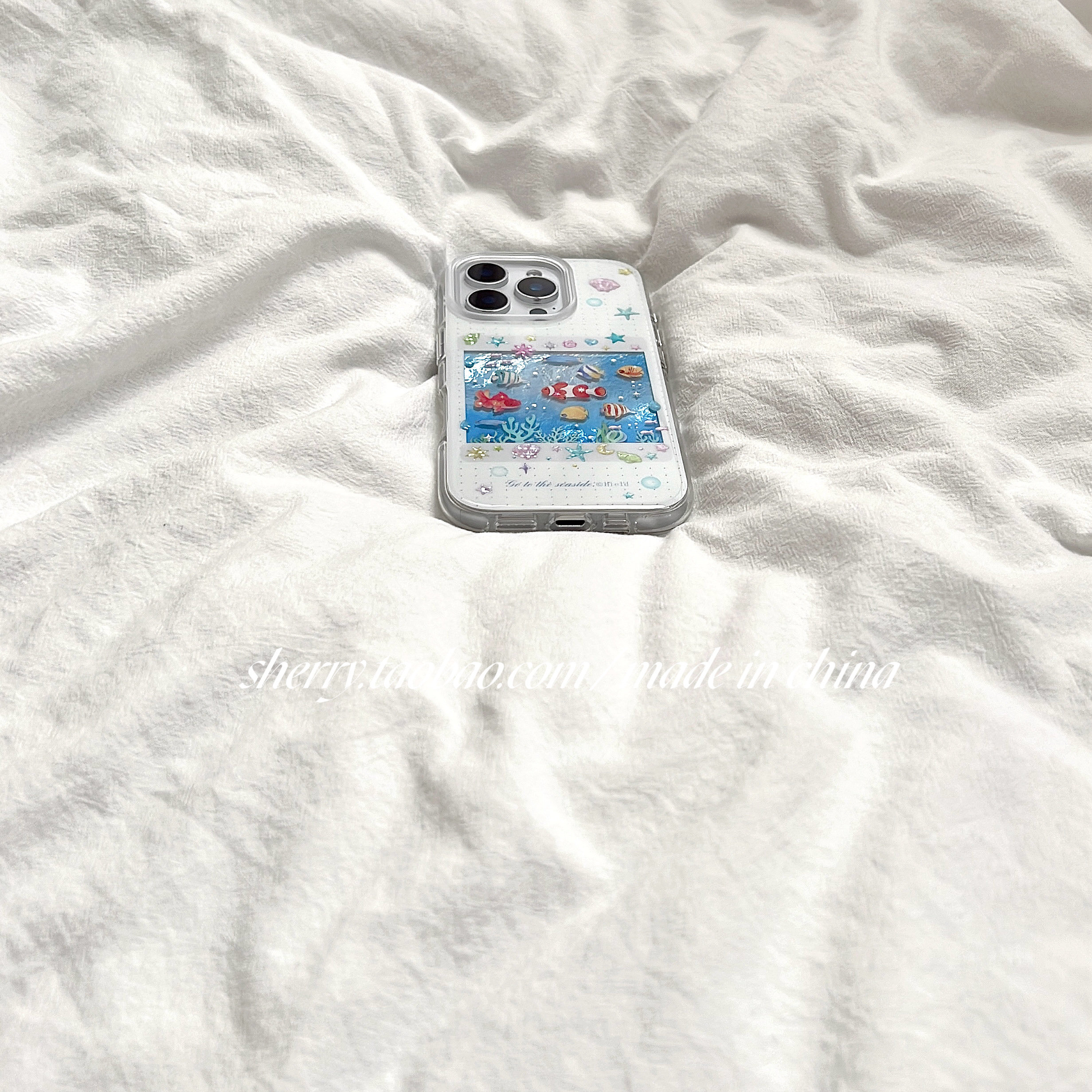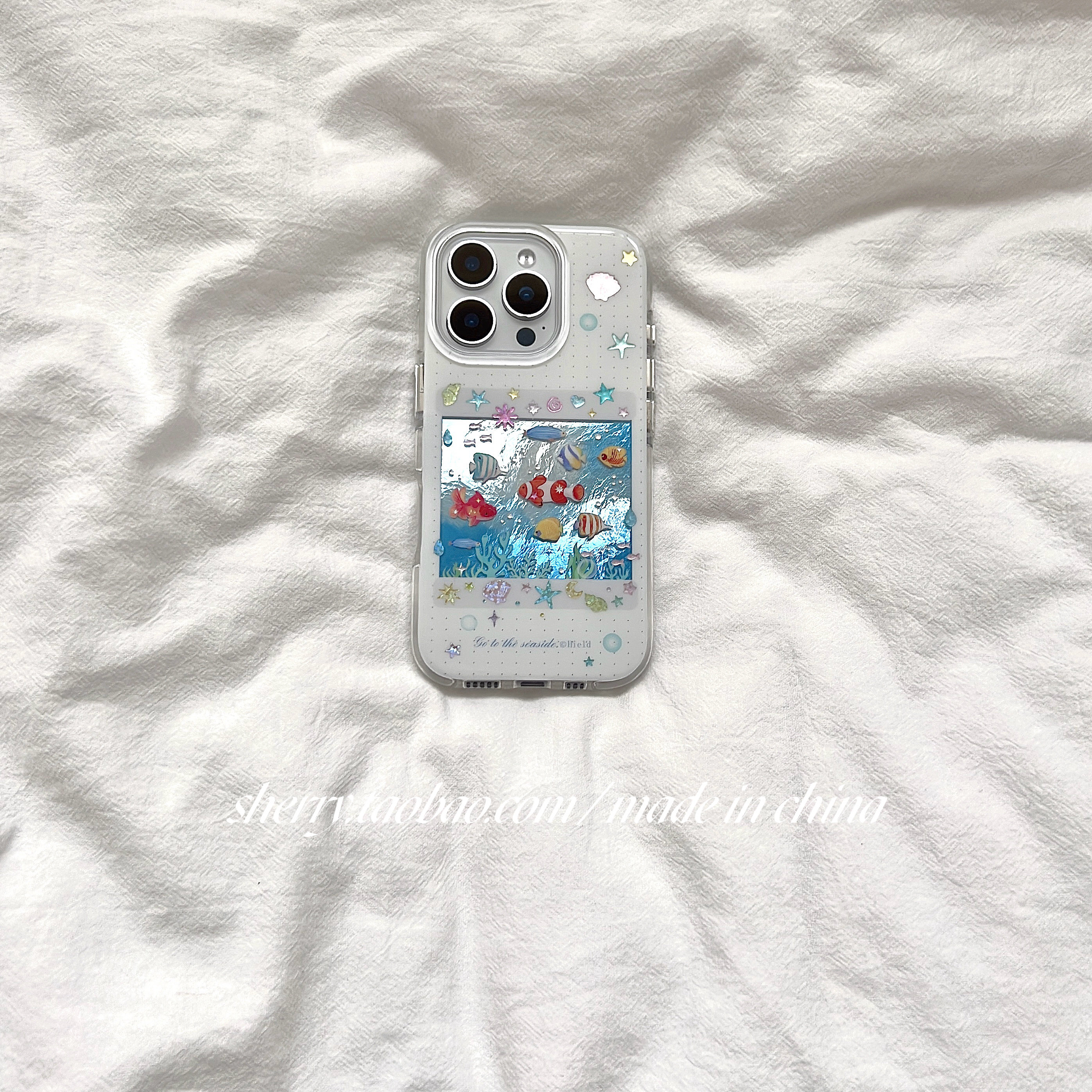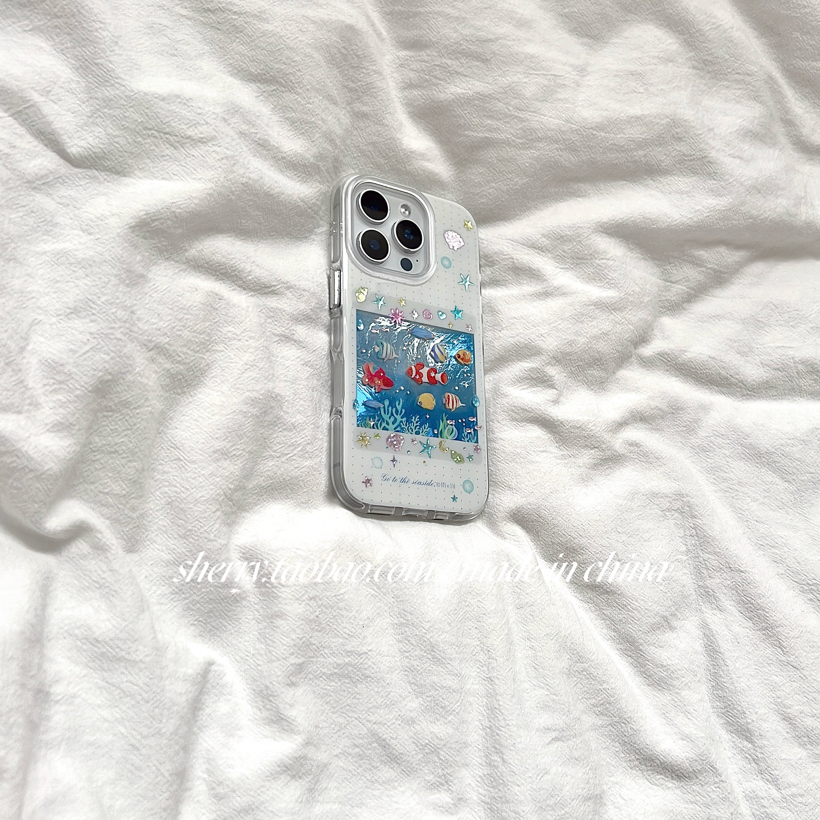 SHERRY*ins风夏日锡纸纹蓝热带鱼缸适用于苹果16ProMax手机壳iPhone15Pro小众少女心14简约13小清新卡通可爱
