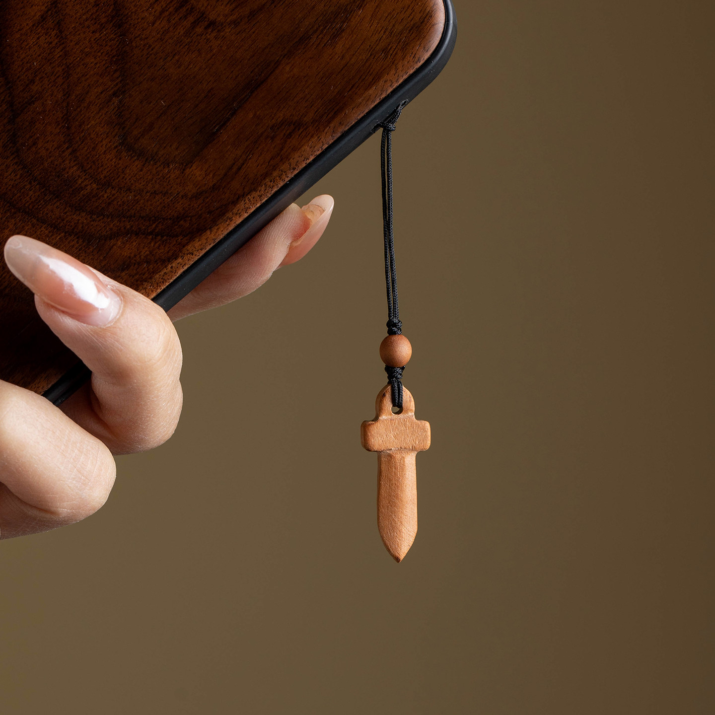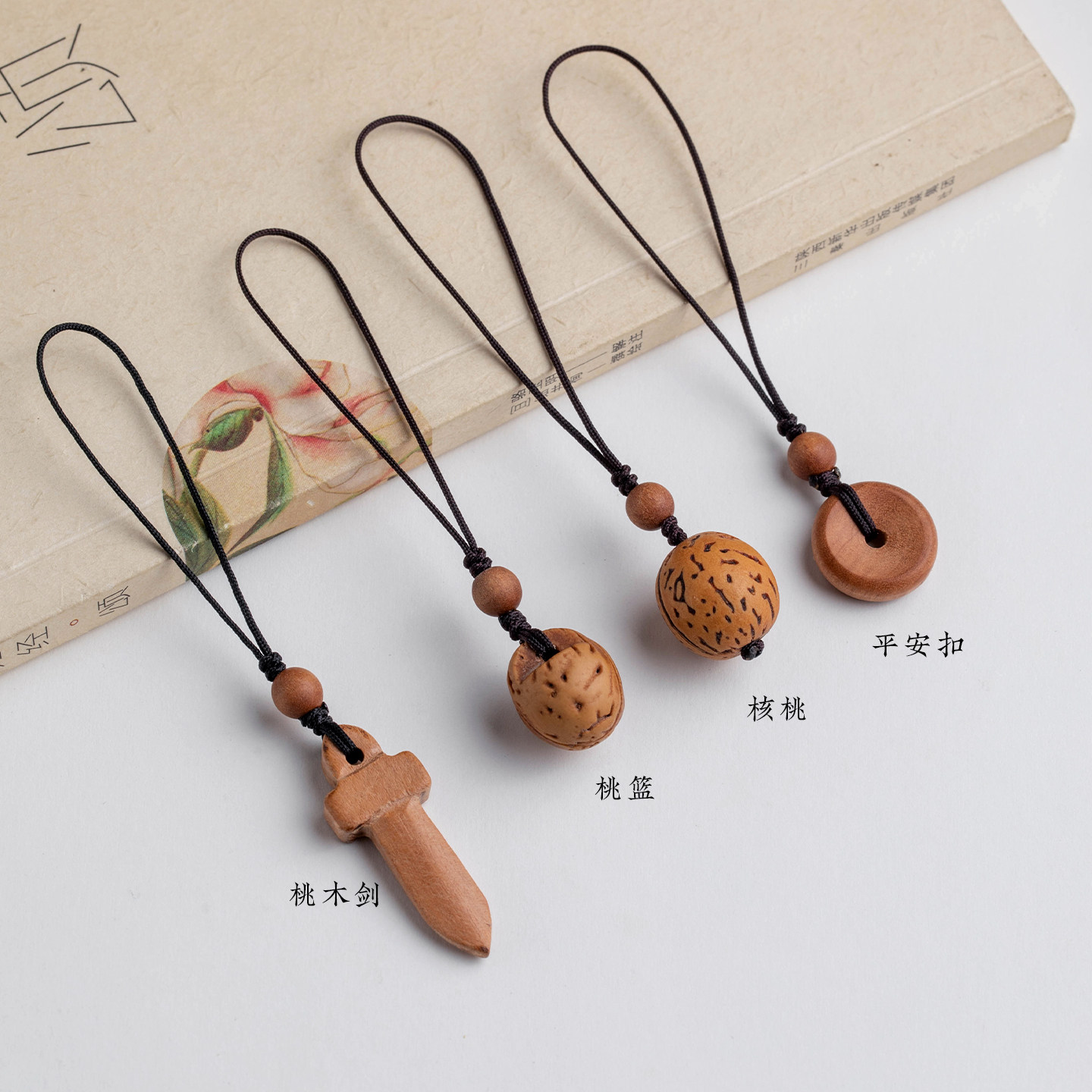 加噜野生老桃木挂件东南枝刀剑斧平安扣护身男女宝宝挂坠符桃蓝木珠孕妇户外防吓惊携带U盘书包相机手机挂绳