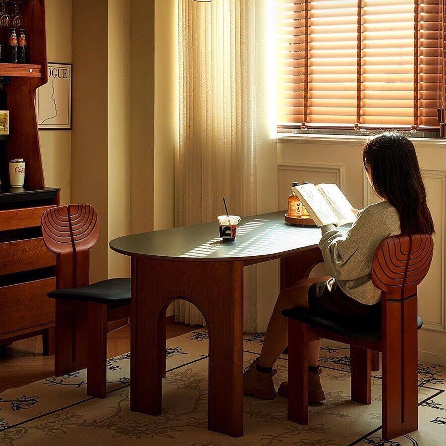 实木餐椅家用餐厅餐桌椅子客厅茶桌木头凳子靠背中古风洽谈书桌椅