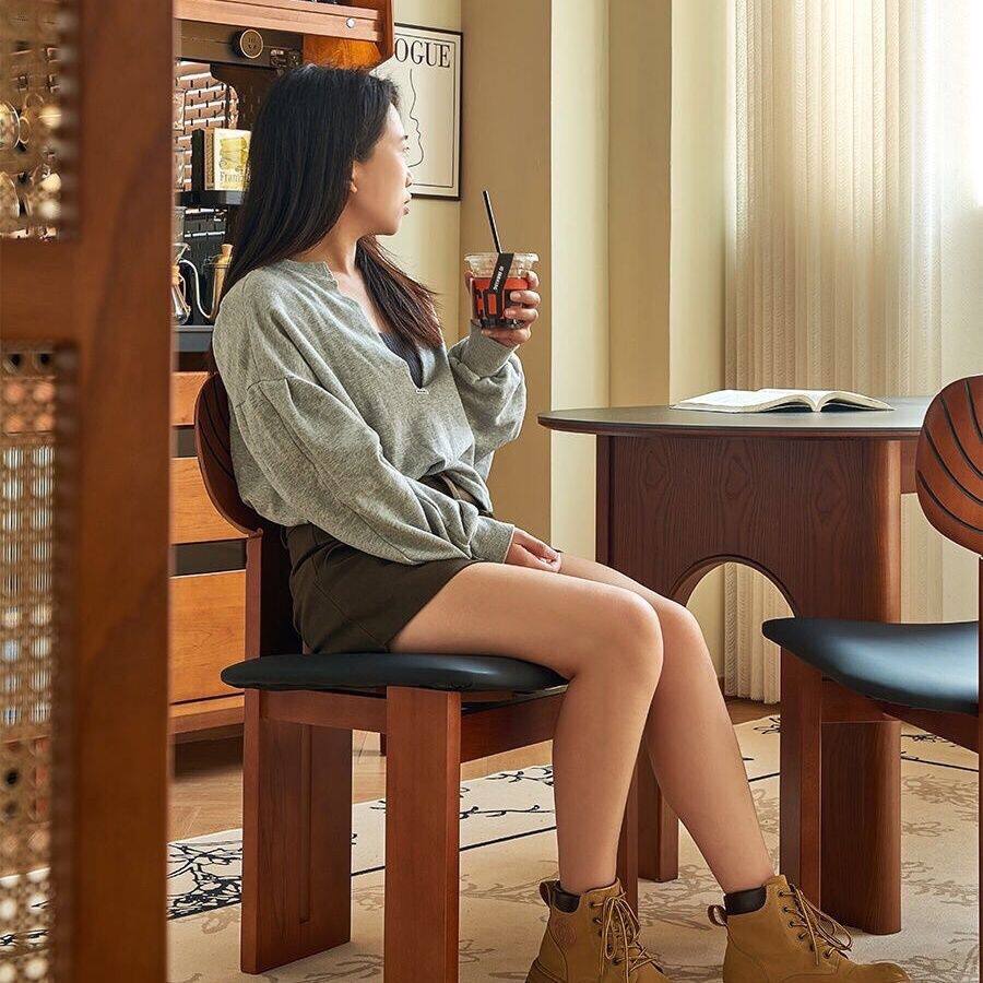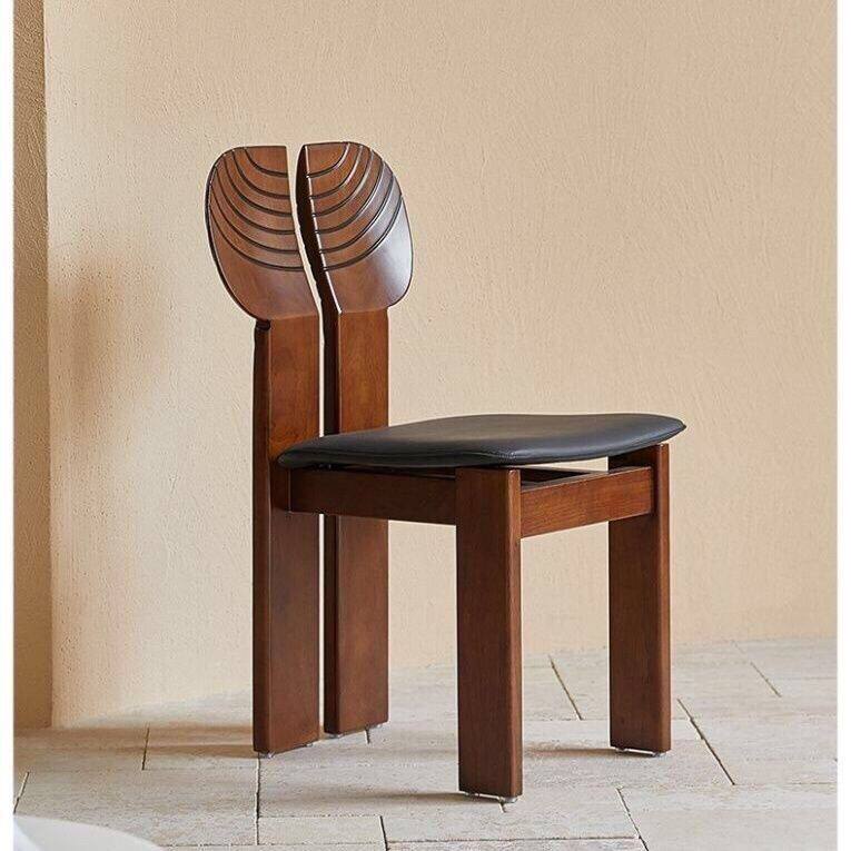 轻奢侘寂风餐椅皮软包设计师现代弯曲木咖啡厅实木椅子家用书房椅