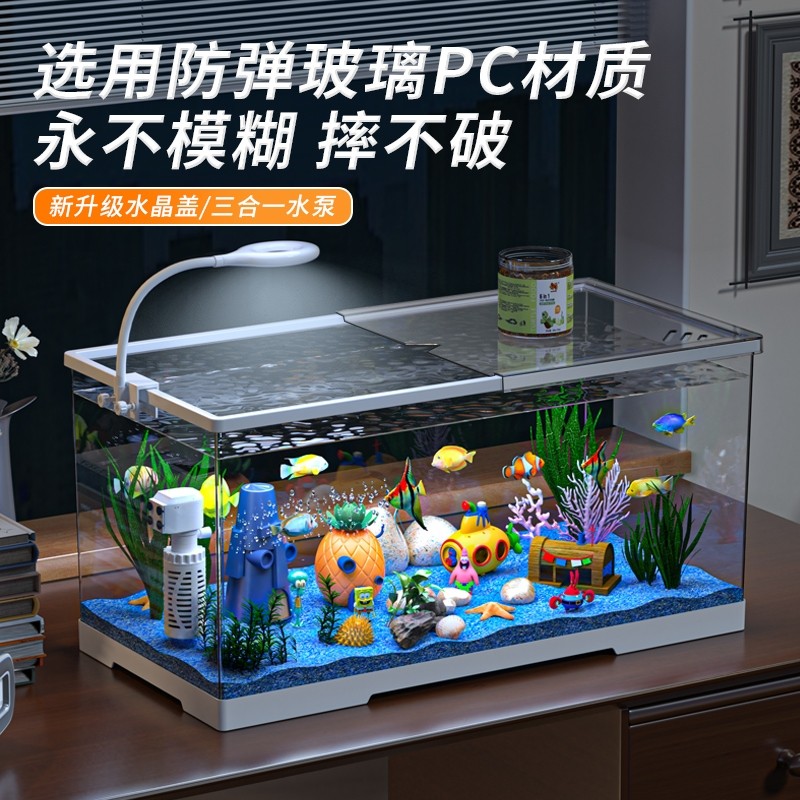 鱼缸家用桌面水草造景生态缸客厅小型带盖透明过滤制氧一体水族箱