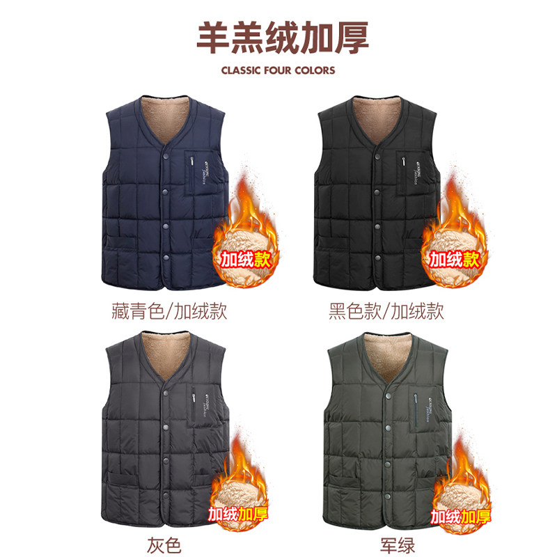 中老年人马甲男加绒加厚爸爸保暖羊羔绒马夹背心爷爷坎肩冬装冬季