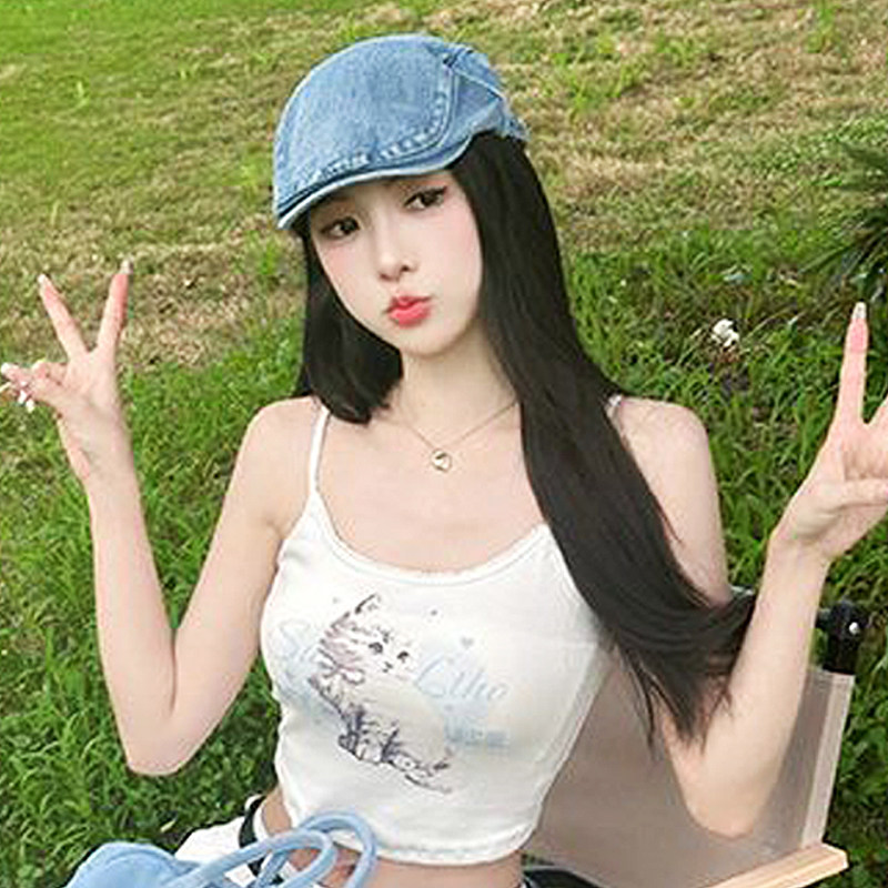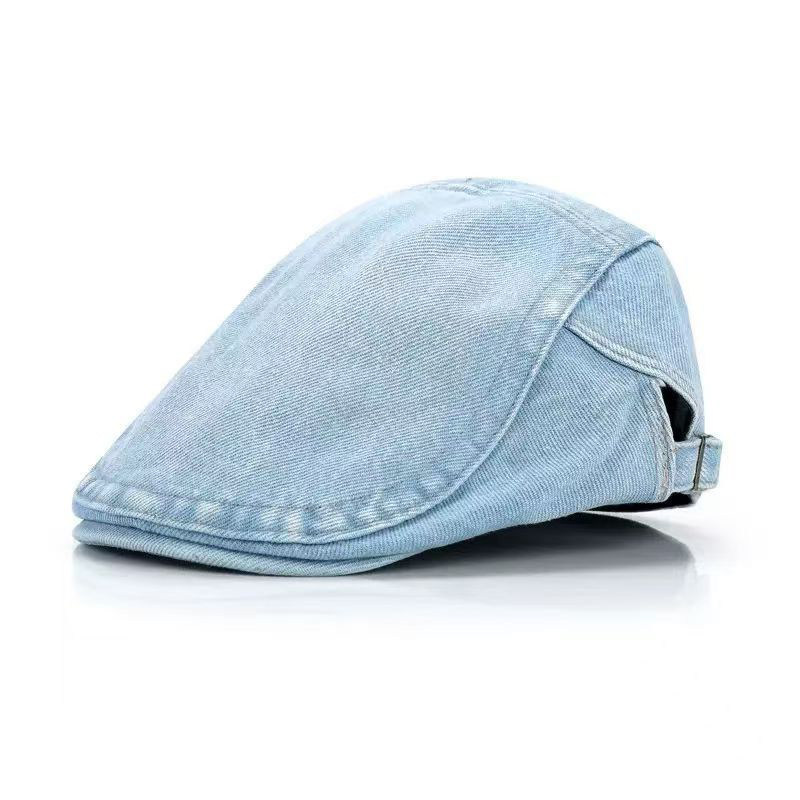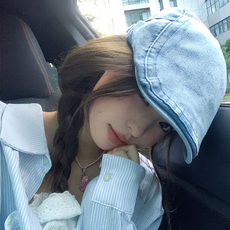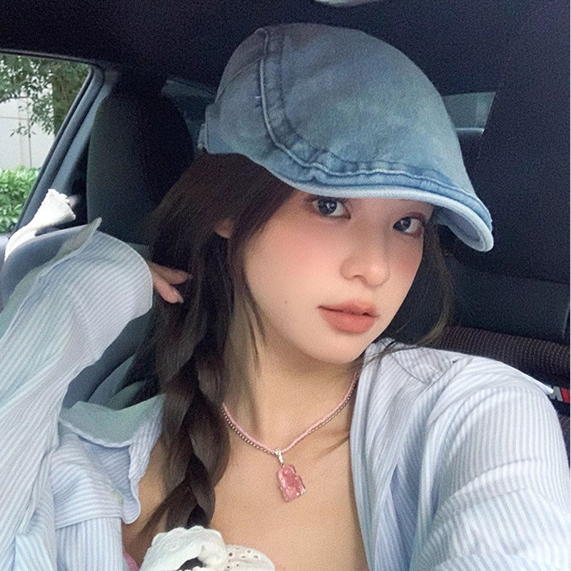 前进帽大头围水洗牛仔复古贝雷帽2025新款夏秋帽子女牛仔圆脸蓝色