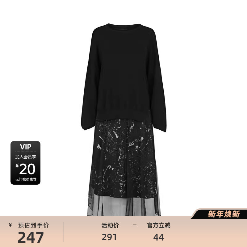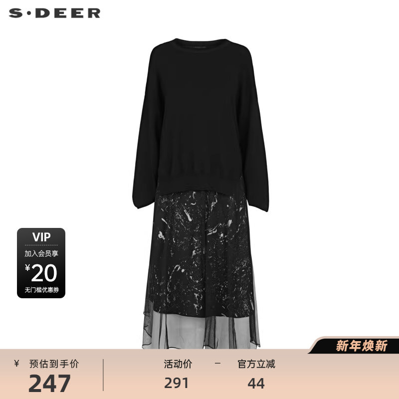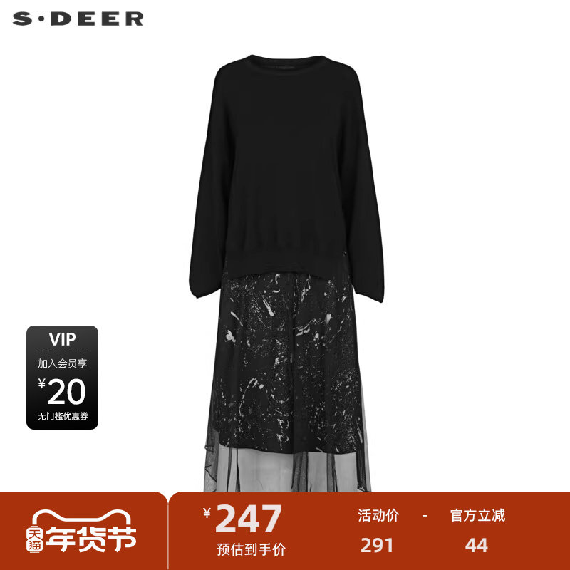 sdeer圣迪奥女装秋晕染收腰网纱针织衫连衣裙套装S24181402