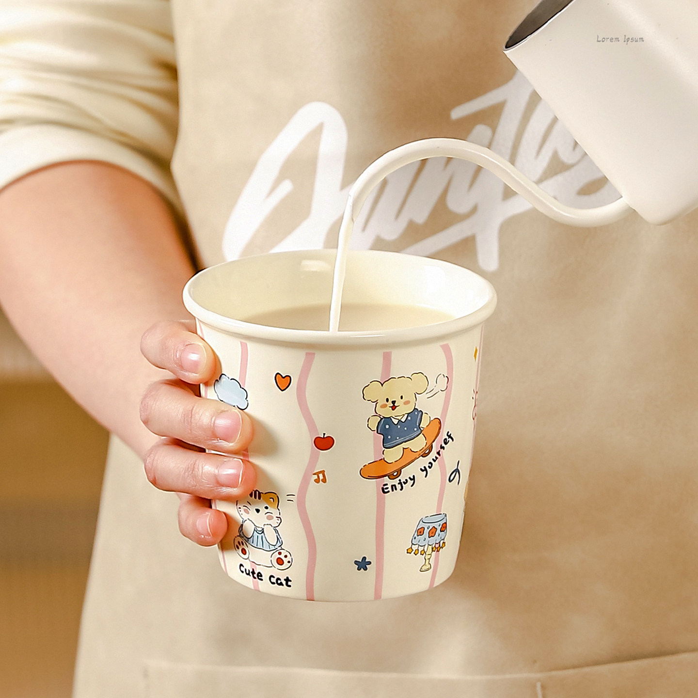 川岛屋可爱咖啡杯陶瓷水杯高颜值马克杯家用喝水手握拿铁杯牛奶杯