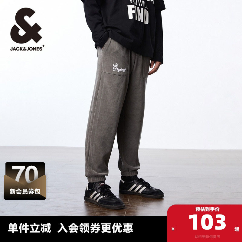 杰克琼斯男装裤子春季男士束脚裤微弹字母刺绣卫裤休闲裤长裤