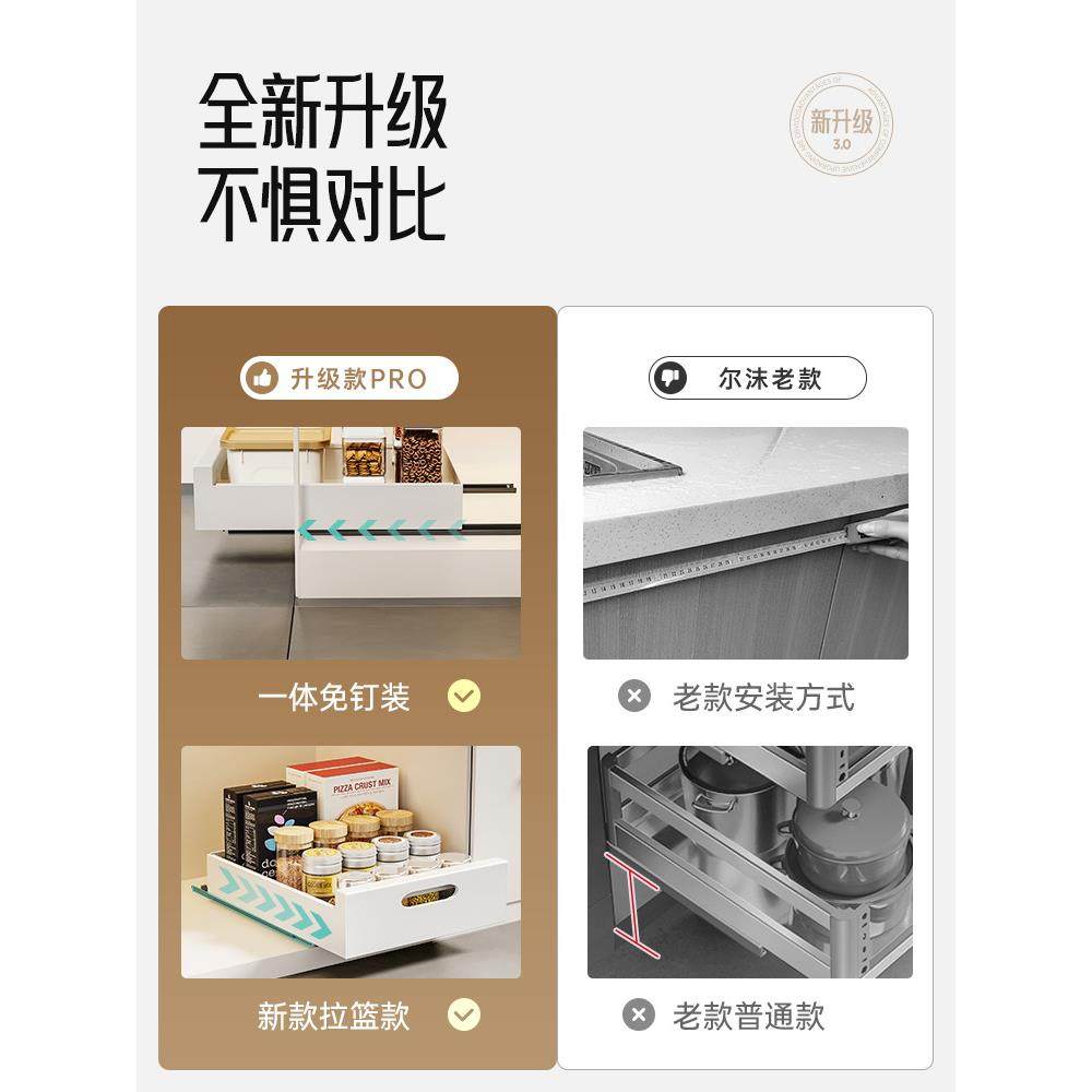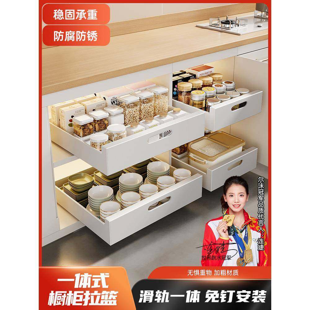 A6L橱柜内抽屉拉篮置物架厨房分层收纳放调料碗碟下水槽抽拉式储