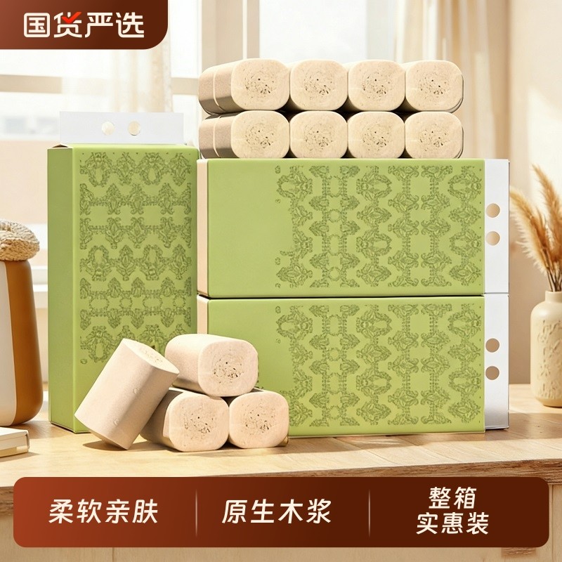 植护卫生纸卷纸家用实惠装整箱无芯卷筒纸卫生间厕所本色厕纸手纸