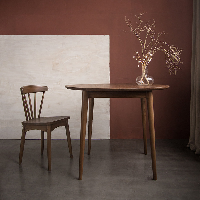 Mountain Living进口柚木家具纯实木餐桌圆桌家庭复古中古风圆形