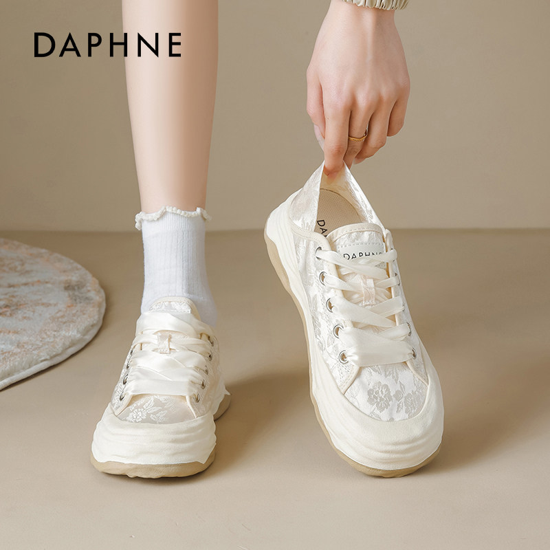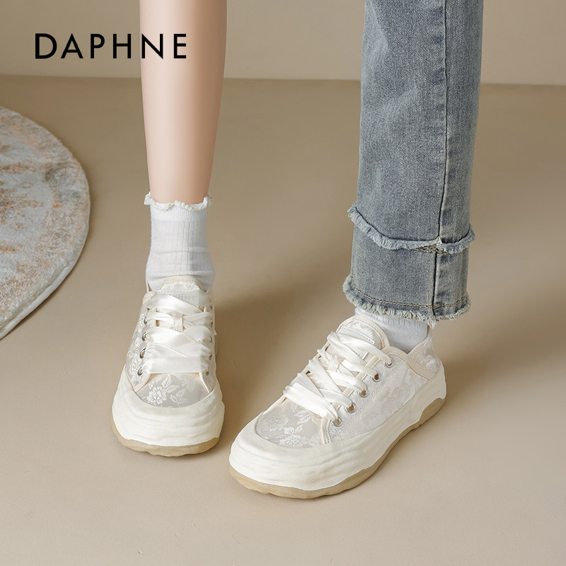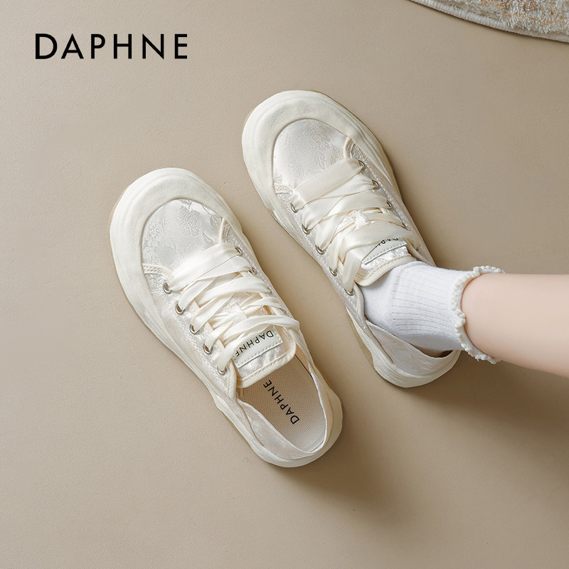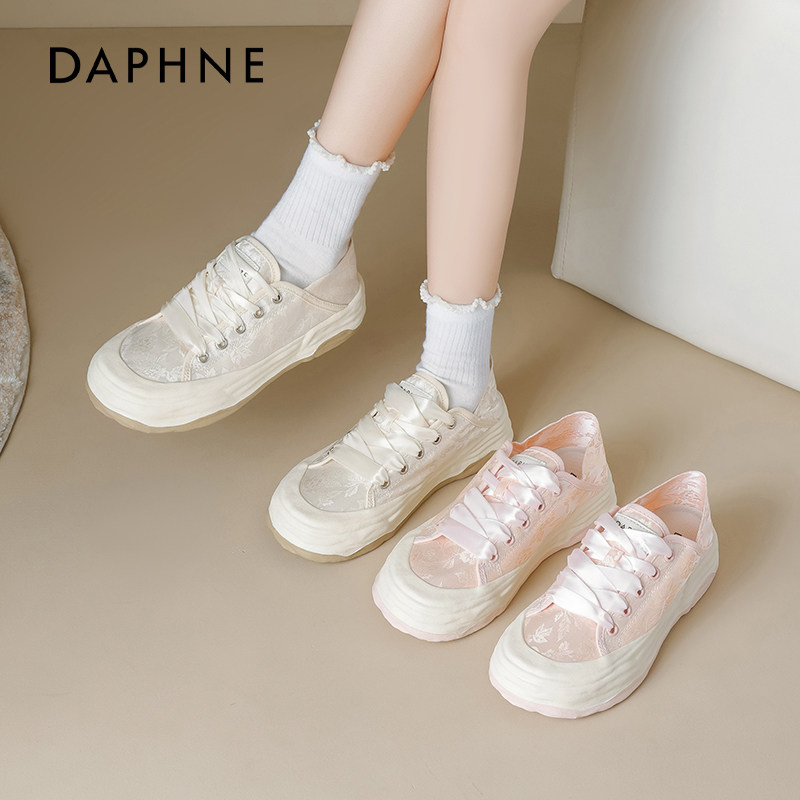 达芙妮休闲帆布鞋女款2026新款春季新中式平底小白鞋一脚蹬板鞋