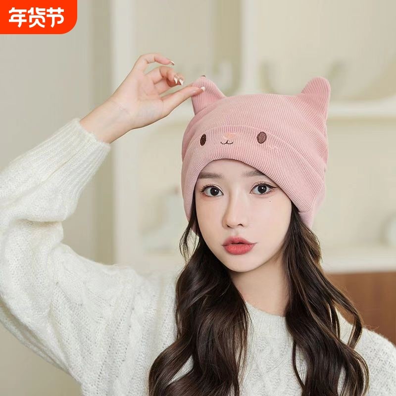 帽子男士秋冬潮毛线帽男款保暖百搭冷帽宽松大头围显脸小针织帽男