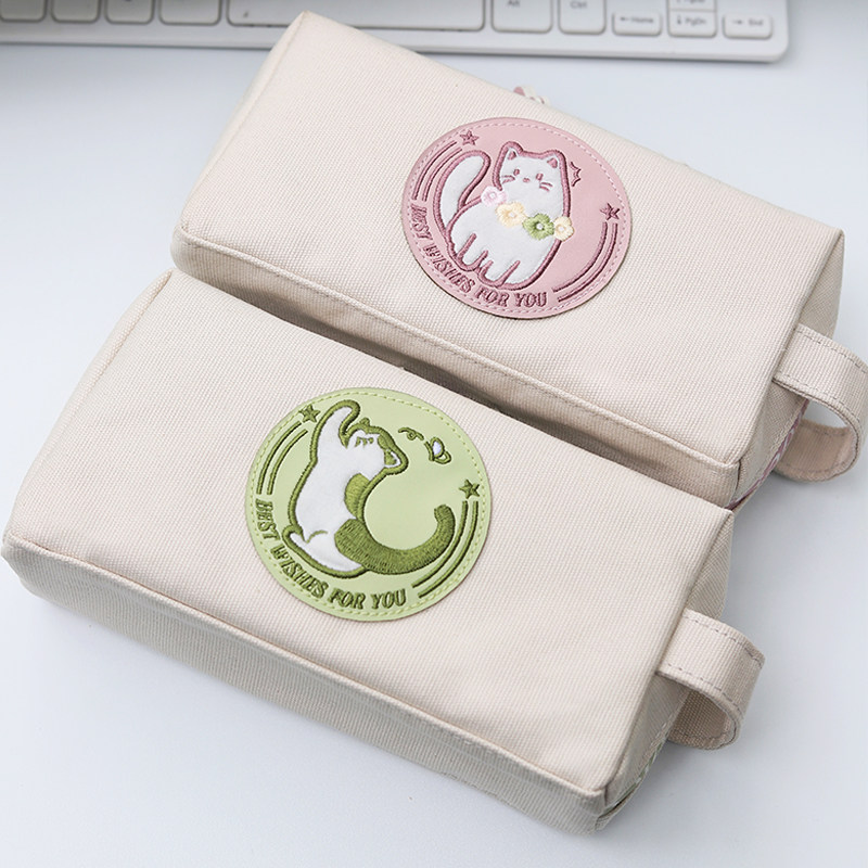 美卡瑞笔袋大容量笔袋樱花抹茶猫收纳可爱小众2026年新款文具盒女生铅笔盒女孩学生初中高中帆布高颜值文具袋