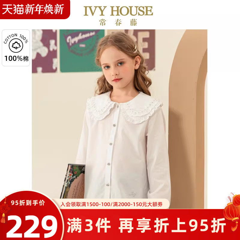 IVY HOUSE常春藤儿童装女童春季新款 双层娃娃领长袖衬衫法式上衣