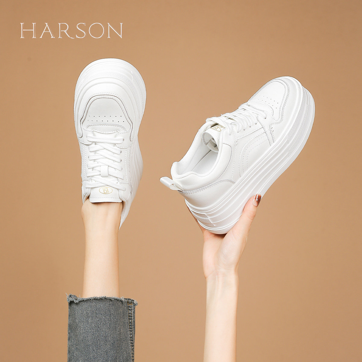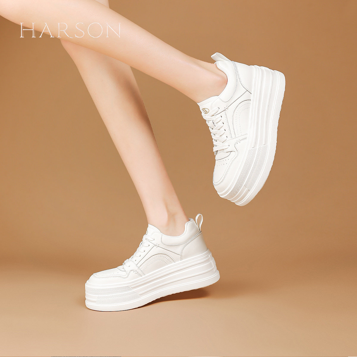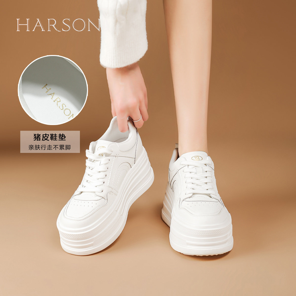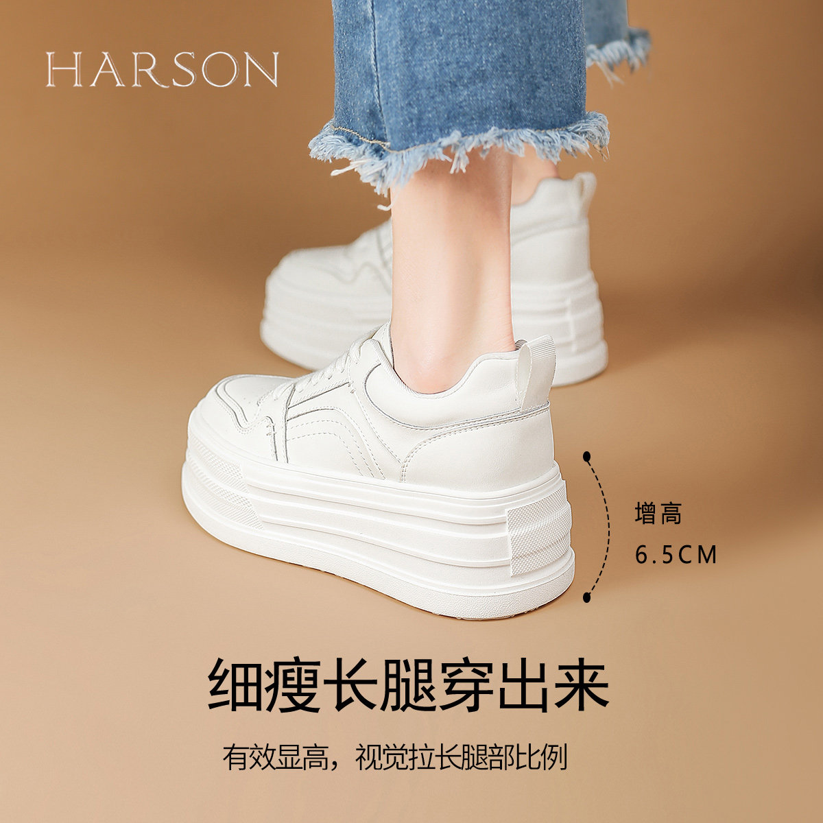 哈森增高小白鞋女鞋2025新款百搭时尚休闲鞋小个子厚底松糕板鞋