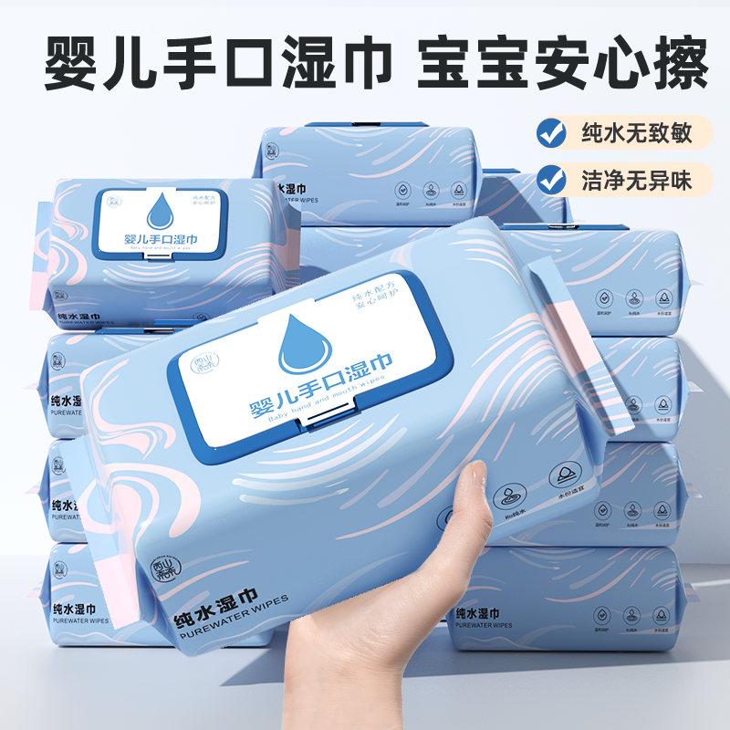 婴儿湿巾纸湿纸巾手口屁专用新生宝宝幼儿童家用实惠装大包无酒精