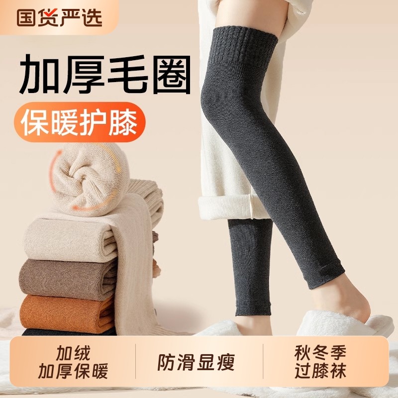 过膝袜子女秋冬羊毛长筒袜加厚保暖护膝大腿袜纯棉压力显瘦高筒袜