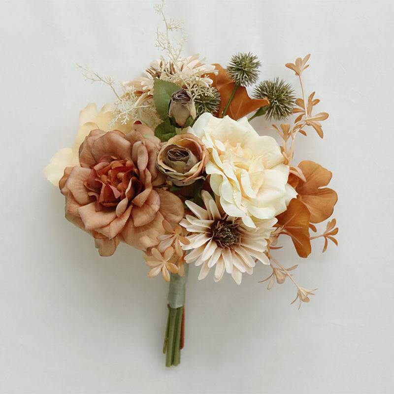 艺仿真花561家居花艺商业活动婚礼花艺焦糖色雅阁花束新娘手捧花