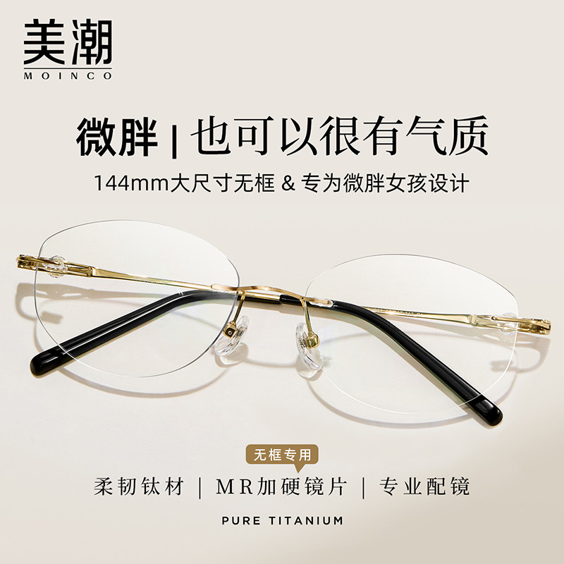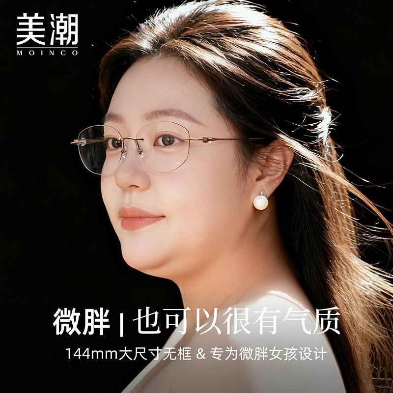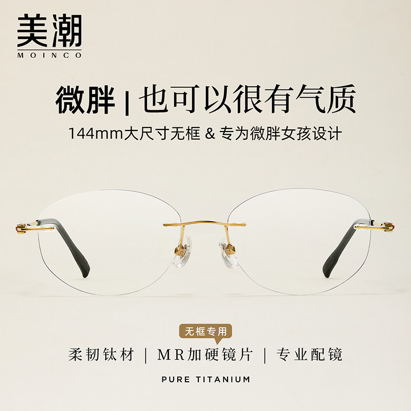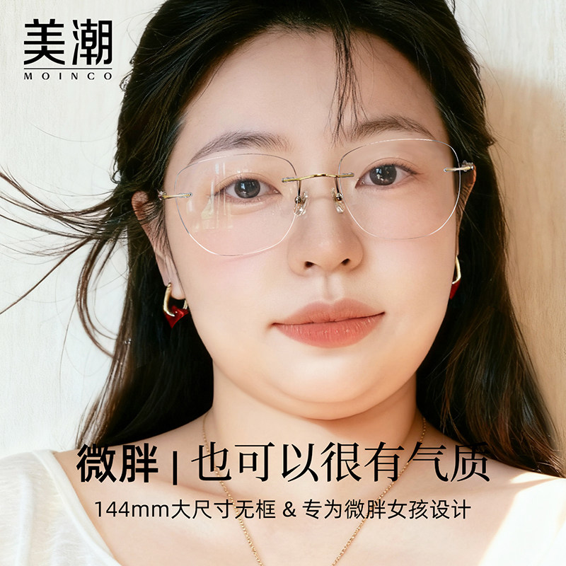 微胖大脸无框眼镜女近视可配度数方圆肉肉脸高级感超轻纯钛无边框
