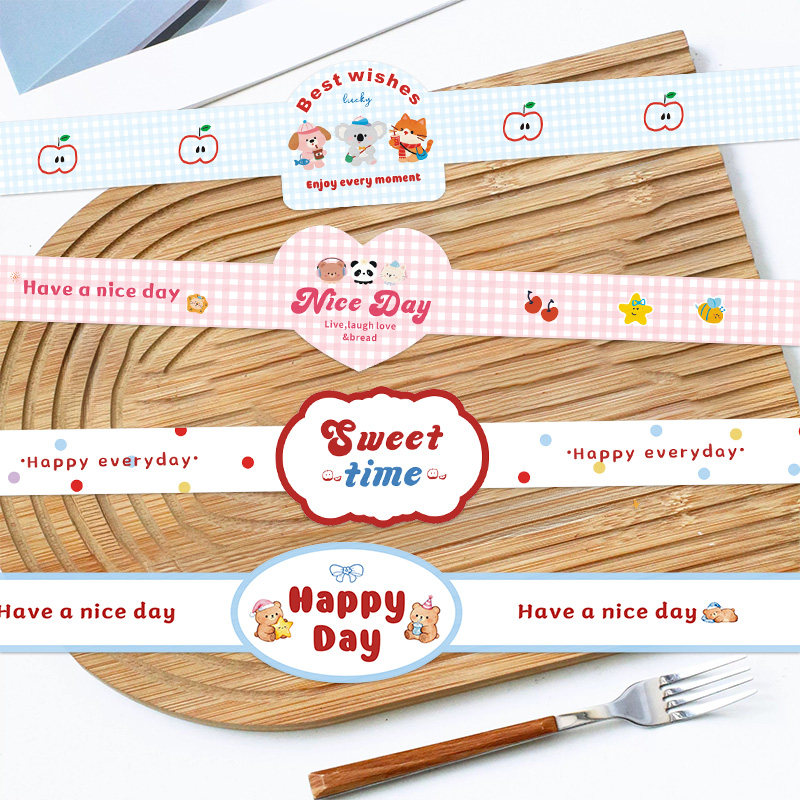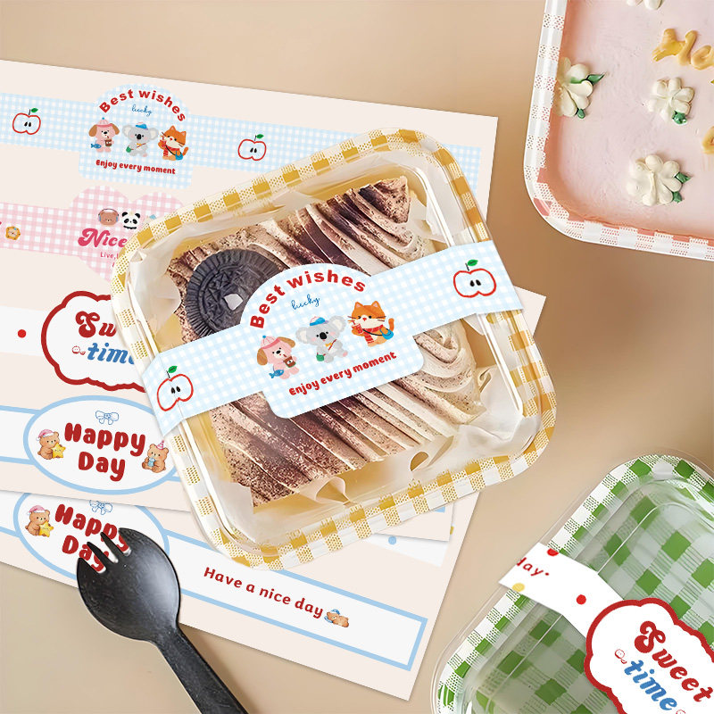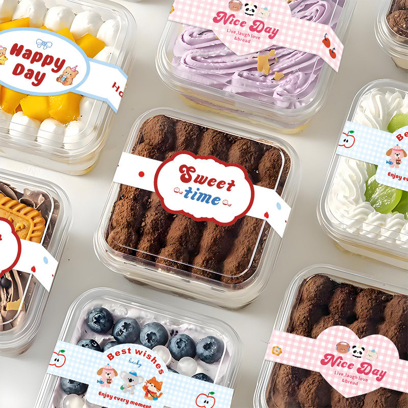 贴纸烘焙长条蛋糕甜品一次性打包盒可爱封口贴法式简约装饰腰封条外卖餐饮纯手工制作logo标签自粘不干胶定制