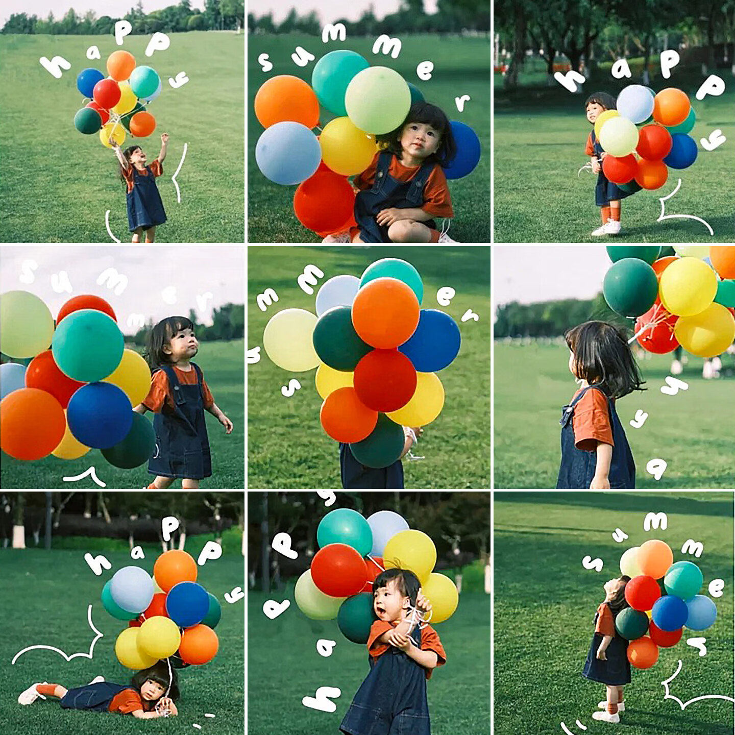 彩色马卡龙气球儿童户外无毒无味草地男女孩生日装饰场景拍照道具