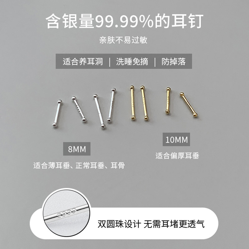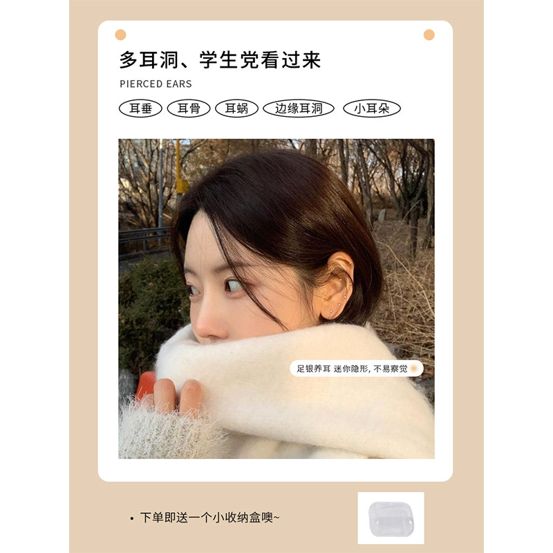 999纯银耳钉迷你隐形养耳洞防堵耳骨钉精致小巧养耳棒耳蜗钉学生