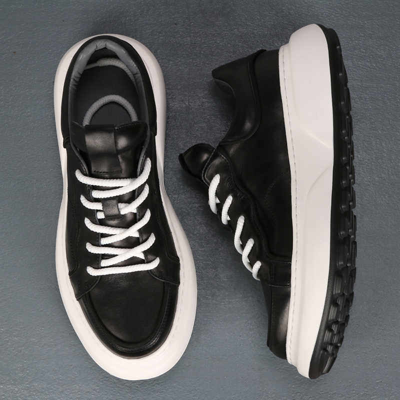 新款真皮小白鞋青春潮流时尚百搭面包鞋厚底增高轻便舒适老爹鞋子