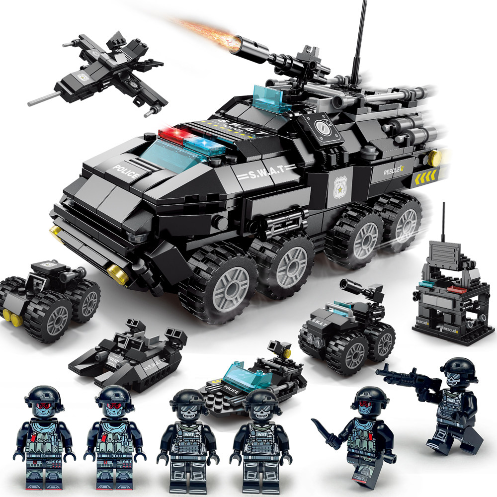 儿童积木装甲车坦克系列男孩子6岁以上拼装玩具小学生警车拼图8岁