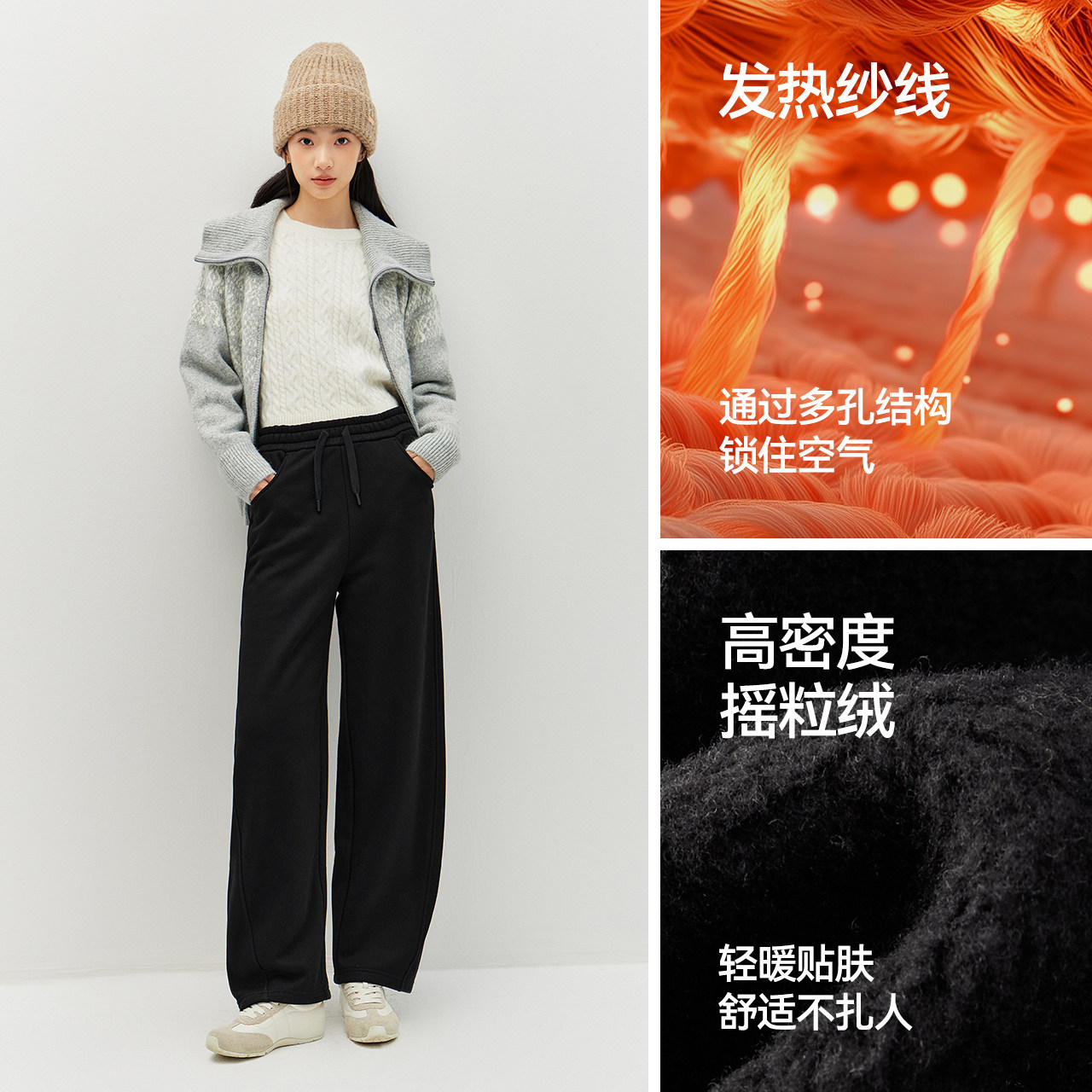 森马休闲裤女加绒裤子发热抑菌宽松弯刀裤25冬新款香蕉裤320G黑色