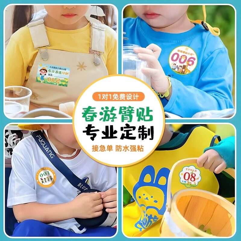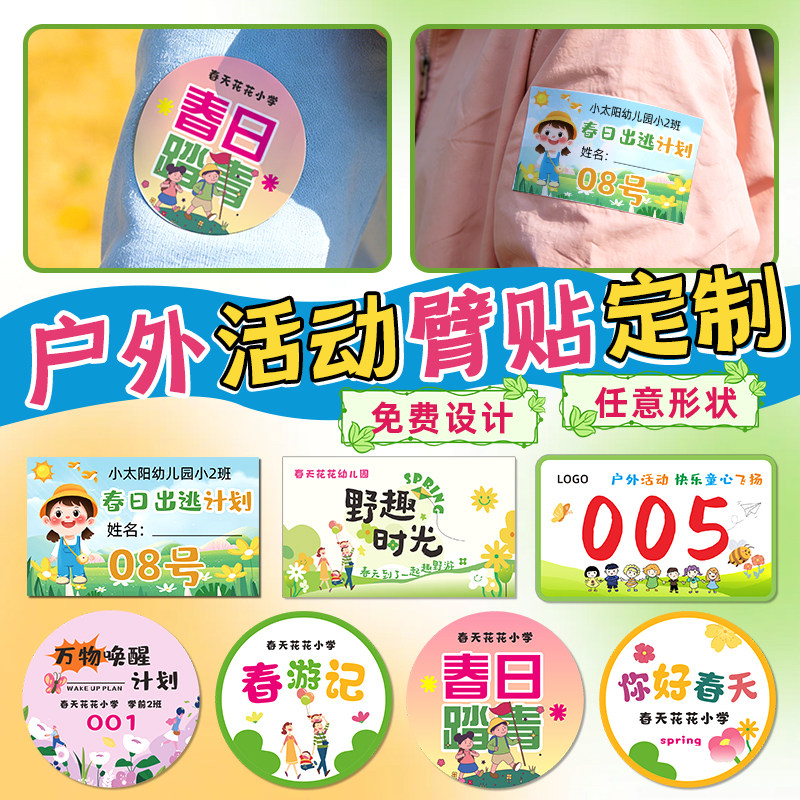 春游手臂贴纸定制幼儿园露营游戏衣服姓名分队标识logo序号不干胶参比赛数字分组号码牌亲子研学活动胸贴标签