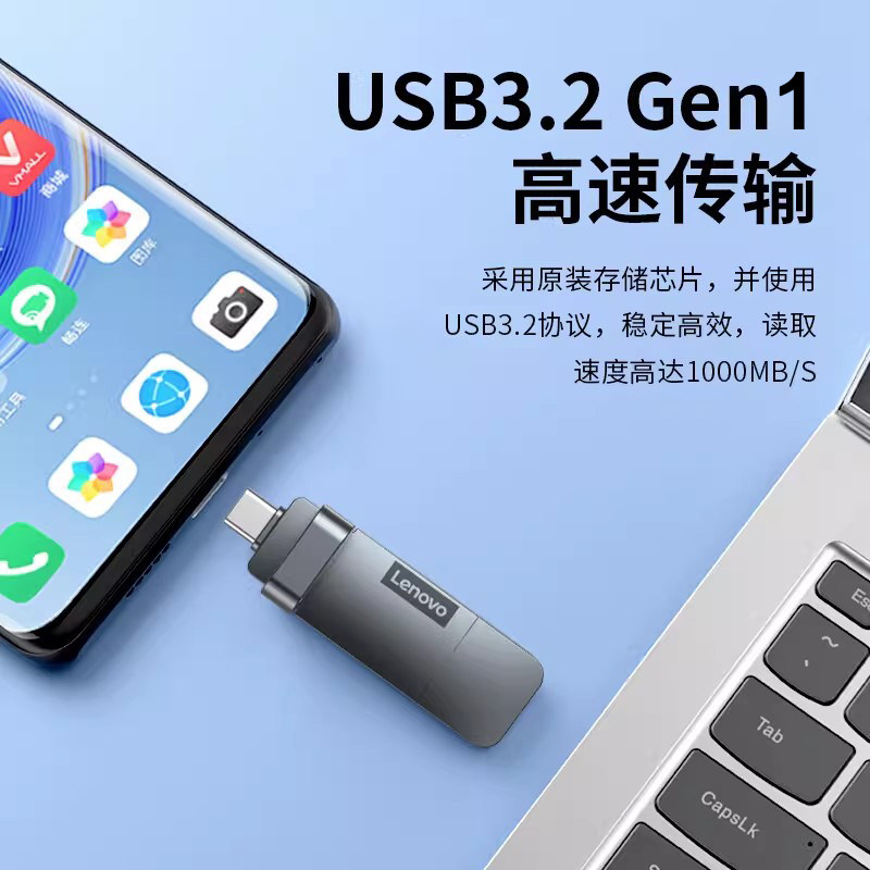 联想固态u盘Type-c双接口K121手机电脑两用优盘1000M/S大容量512G