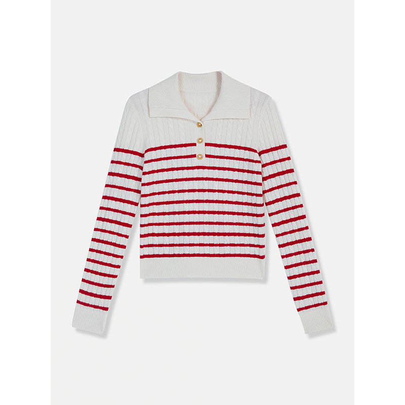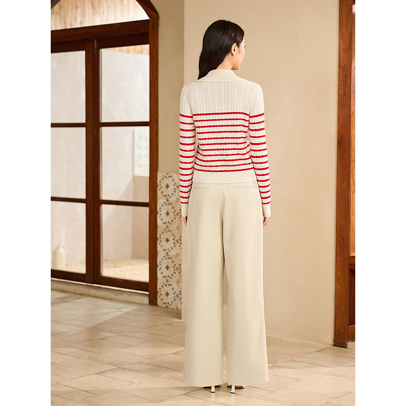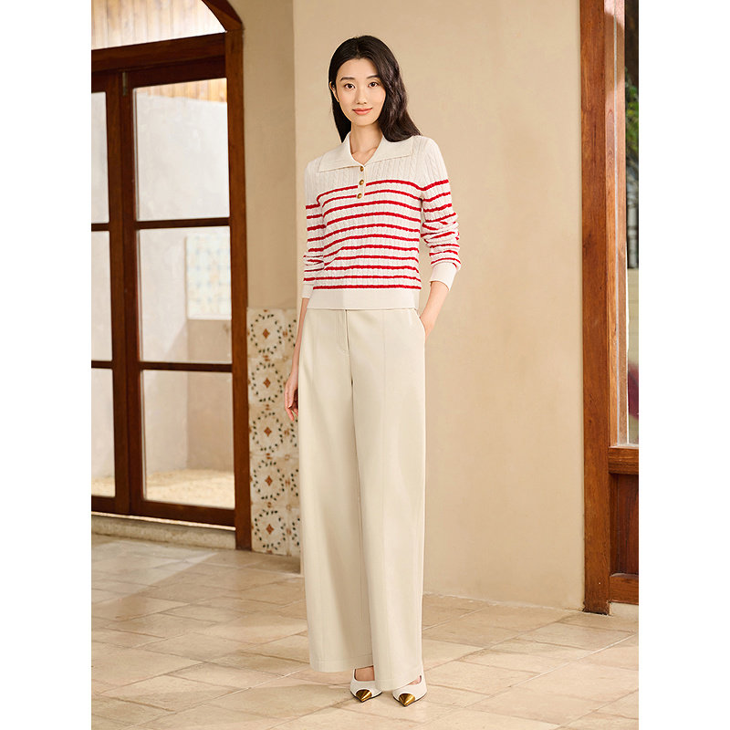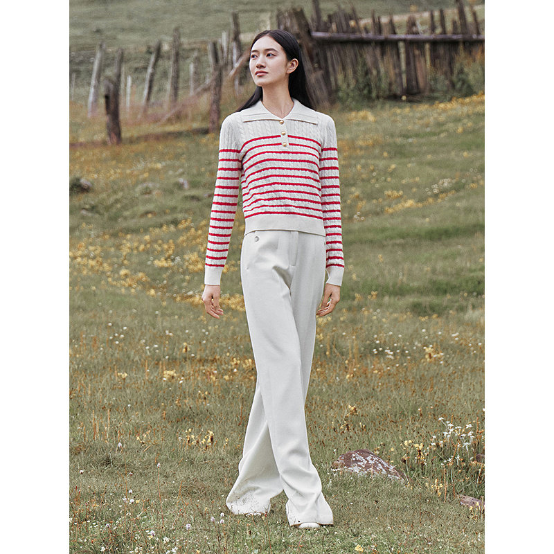 YINER音儿2026春季新款时尚条纹polo领阿拉善羊绒羊毛混纺针织衫