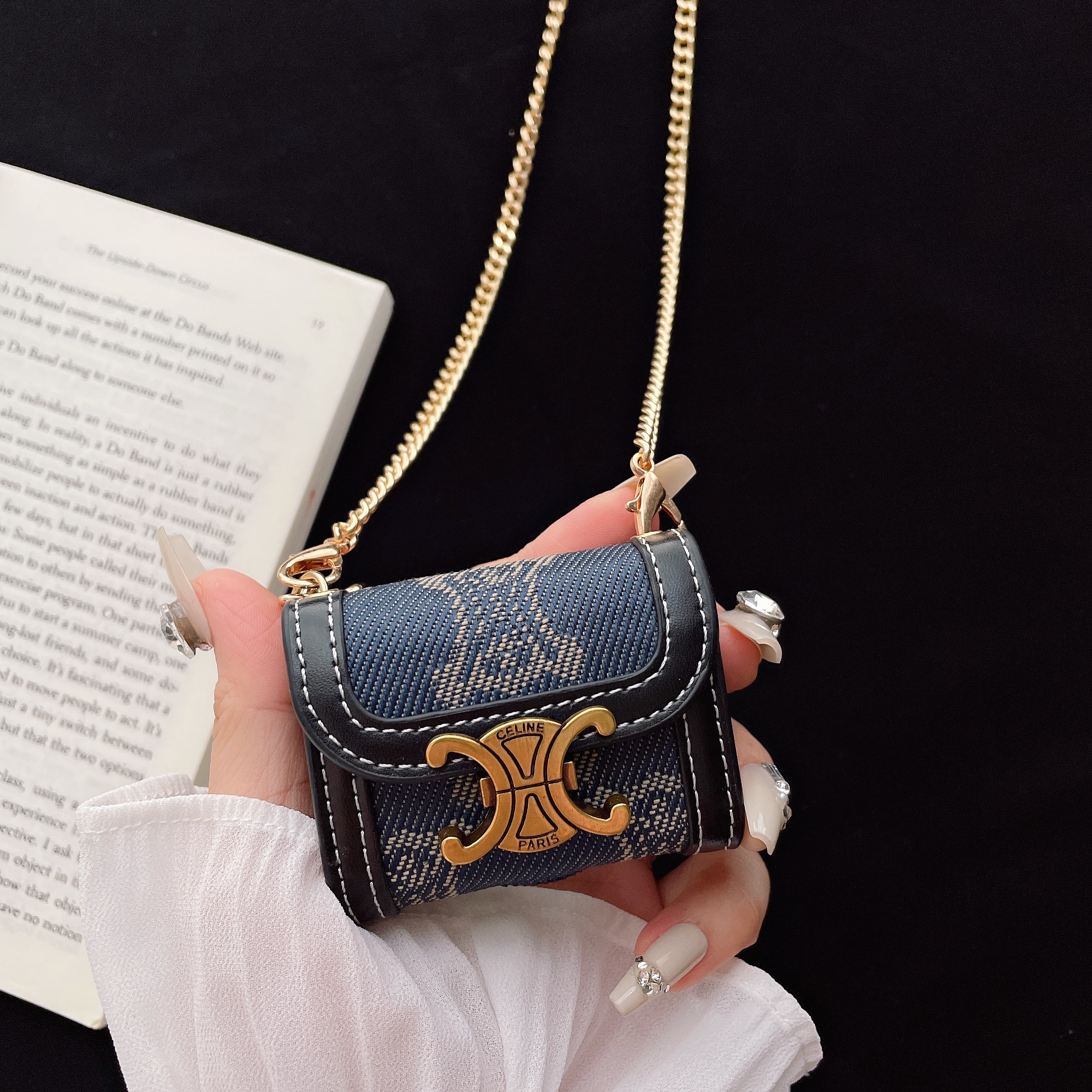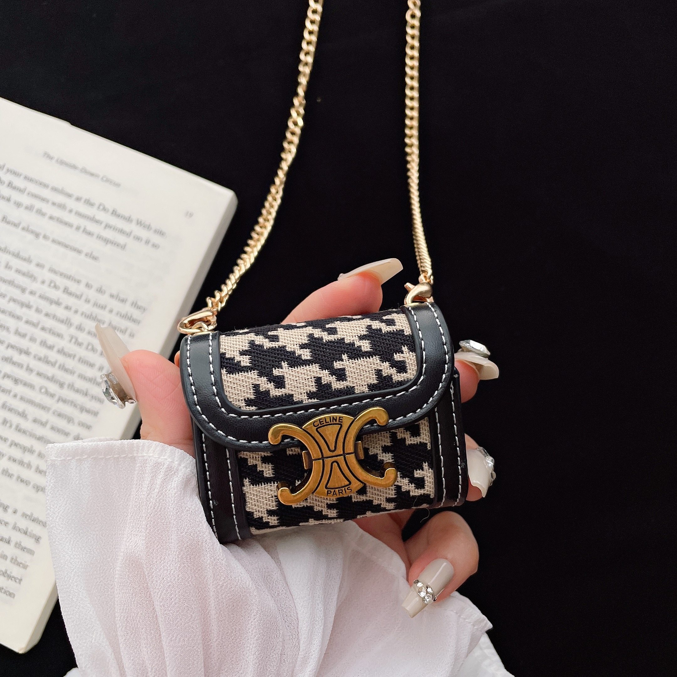 经典潮大牌凯旋门斜挎挂绳适用苹果蓝牙无线耳机包AirPods pro奢华airpods 1/2/3/4代保护套女高级感布面