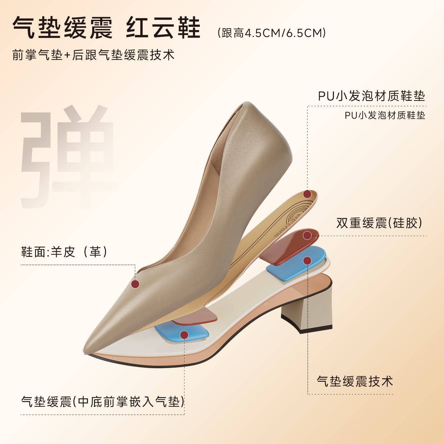 【明星同款|静音系列】千百度练习曲裸色高跟鞋真皮通勤法式单鞋
